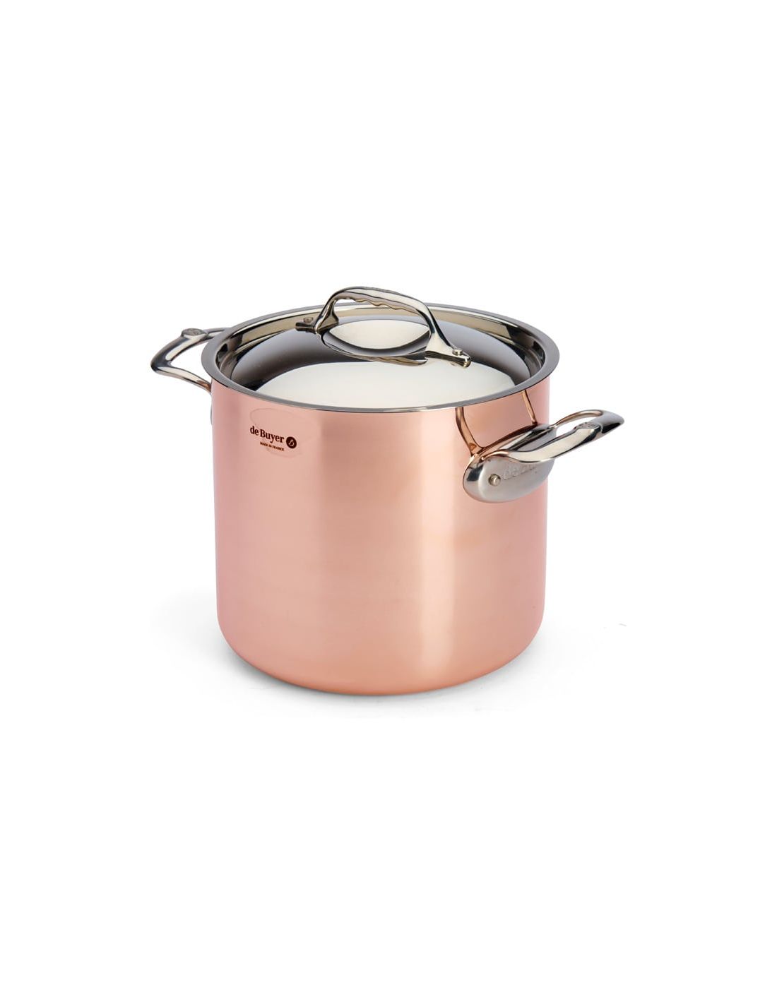 Der de Buyer PRIMA MATERA Hoher Kochtopf aus Kupfer und Edelstahl mit Deckel ist ein Premium-Kochgeschirr für alle, die Präzision, Eleganz und absolute Temperaturkontrolle suchen. Gefertigt aus 90% Kupfer außen und 10% Edelstahl innen, verbindet er die außergewöhnliche Wärmeleitfähigkeit von Kupfer mit der Alltagstauglichkeit und Lebensmittelsicherheit von Edelstahl. Er eignet sich ideal zum Schmoren, Braisen, für Suppen, Brühen und andere Gerichte, die schnelles, gleichmäßiges Erhitzen und eine hervorragende Wärmespeicherung erfordern.