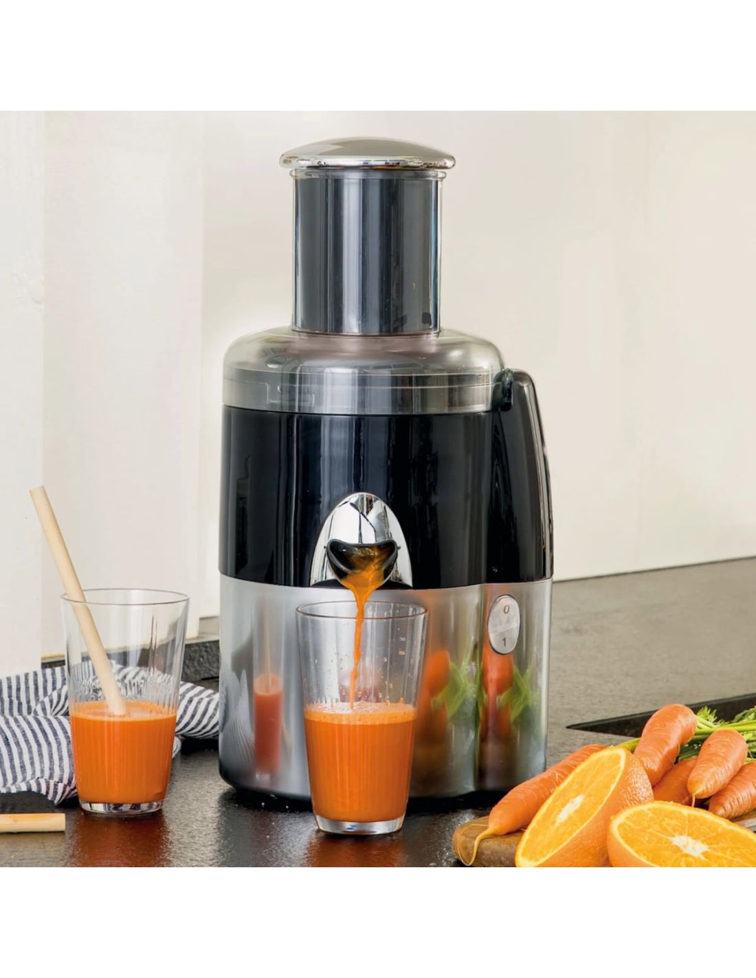 Dank seiner Kaltpresstechnologie hilft er dabei, Vitamine und Mineralstoffe besser zu erhalten und die Oxidation während der Zubereitung zu reduzieren. Das System umfasst den Juice Filter XL für festeres Obst und Gemüse, den Extra Press XL für weiche oder gekochte Zutaten, die Citrus Press mit Fruchtfleischsystem für Zitrussäfte mit oder ohne Fruchtfleisch sowie einen Gemüseschneider-Aufsatz mit Scheiben zum Schneiden, Reiben und für Julienne, ideal für Salate und schnelle Zubereitungen.