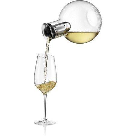 Dank des fein perforierten Siebs im Hals der neuen Dekantierkaraffe von Eva Solo wird der Wein schon beim Einfüllen gut und schonend durchlüftet.
