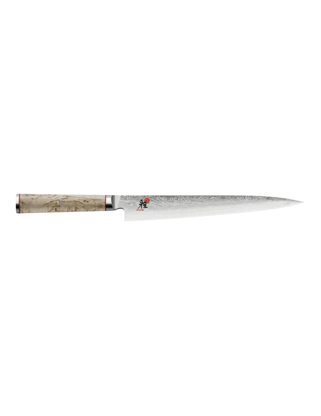 Das SUJIHIKI-Messer aus der Serie MIYABI 5000MCD ist ein japanisches Schneidemesser mit einer handgeschmiedeten Klinge aus 100 Lagen verschiedener Stahlsorten. Die Ästhetik spielt in der japanischen Küche seit jeher eine wichtige Rolle. Das Aussehen eines Gerichts und seine Präsentation auf dem Teller gehören ebenso zum Genuss wie sein Geschmack und sein Aroma. In der Küche sind japanische Köche in Sachen Ästhetik ebenso anspruchsvoll wie in Sachen Funktionalität. Mit der Messerserie MIYABI 5000MCD erhalten Profis und ambitionierte Hobbyköche ein Präzisionsmesserset, das perfekte Funktionalität und Ergonomie mit einzigartigem Design verbindet.