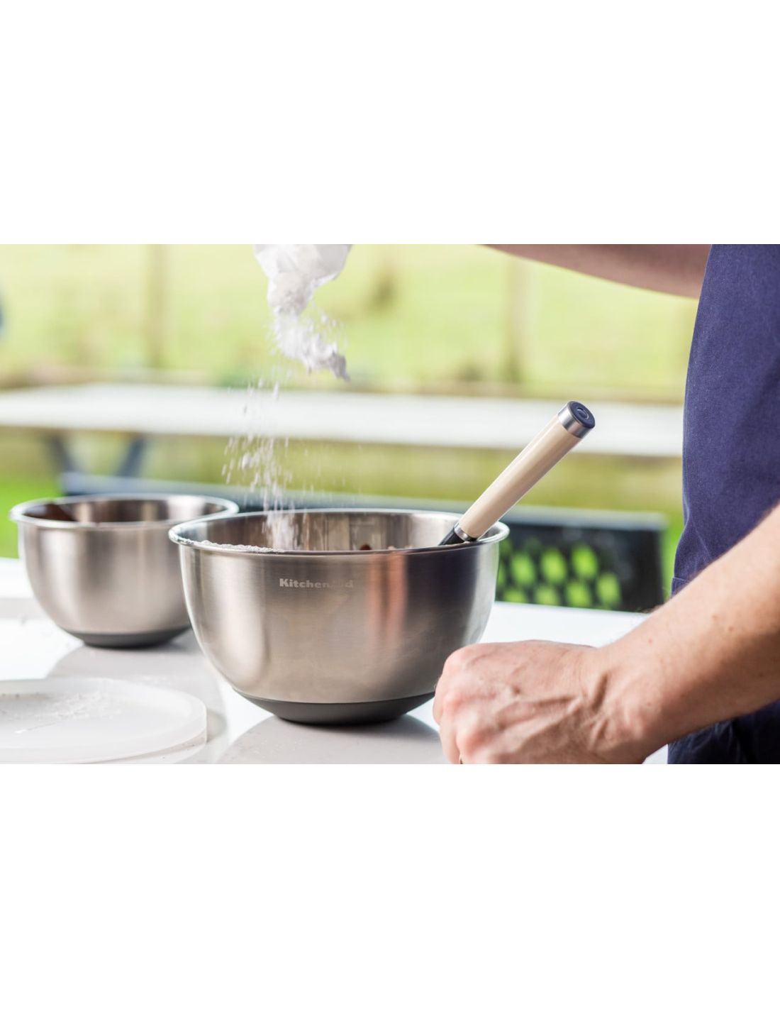 Die Schüsseln haben gerade Seiten und einen großen Boden für maximalen Mischraum sowie einen praktischen Ausgießer, der das Umfüllen des Inhalts in Servierschüsseln, Krüge oder andere Behälter erleichtert. Dank des rutschfesten Gummirings im Boden wird jede Schüssel beim Mixen stabilisiert. Die innenliegenden Messmarkierungen helfen dabei, die Menge der...