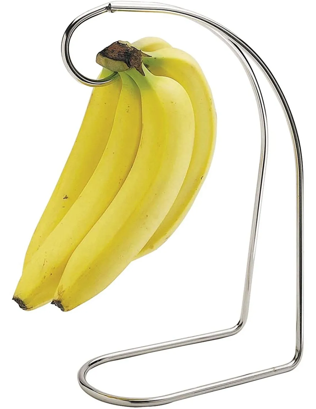 Haben Sie bemerkt, dass das Obst in Ihrem Haus schneller verdirbt, als Sie dachten? Vielleicht müssen Sie zu viel wegwerfen oder ständig Äpfel und Birnen retten, die nicht mehr so gut aussehen? Nun, laut der Wissenschaft können wir mit dem Finger auf jedermanns liebstes biegsames Obst zeigen: Bananen! Ja, ob Sie es glauben oder nicht, Bananen setzen tatsächlich ein Gas frei, das andere Früchte schneller reifen lässt. Für den Menschen ist das harmlos, aber für Äpfel, Birnen und Melonen ist es nicht so gut. Diese Früchte reagieren besonders empfindlich auf das Gas, und wenn diese lästigen gelben Dinger in der Nähe sind, können sie in kürzester Zeit nicht mehr frisch aus dem Laden kommen, sondern überreif sein. Zum Glück gibt es eine einfache Lösung für diese missliche Lage: diesen eleganten und glänzend verchromten Bananenständer. Hängen Sie Ihre Bananen an der spitzen Spitze auf, und Sie können sie (und ihr Reifungsprozess) sicher von den anderen Früchten trennen. So vermeiden Sie Lebensmittelabfälle und sparen Zeit und Geld. Sie werden sich bald fragen, wie Sie (und Ihre Bananen) jemals ohne ihn ausgekommen sind!