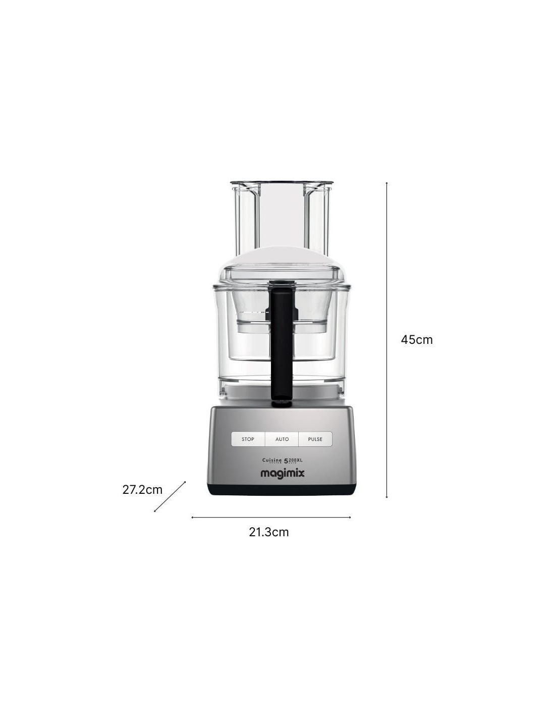 Die Küchenmaschine CS 5200 XL Magimix ist eine vielseitige und leistungsstarke Lösung, um süße und herzhafte Rezepte im Alltag leichter zuzubereiten. Geeignet für 1 bis 8 Personen, ermöglicht sie das Schneiden, Raspeln, Mischen, Kneten, Schlagen, Zerkleinern und Emulgieren und ist damit eine praktische Hilfe für Brot, Kuchen, Pürees, Suppen, Saucen, vorbereitete Gemüsegerichte und Hackfleisch.