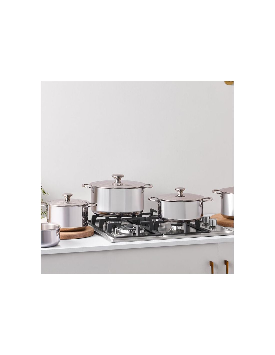 18/10-Edelstahl: Kochtopf 20 cm, Bratentopf 20 cm, flacher Bratentopf 24 cm, Stielkasserolle 16 cm + 3 Deckel (16/20/24 cm). Griffe aus 18/10-Edelstahl mit PVD-Beschichtung. Für Induktion geeignet. Design David Chipperfield.Das Alessi Convivio Set entstand aus dem Dialog zwischen Architekt David Chipperfield und Sternekoch Pietro Leemann – klare Ästhetik...