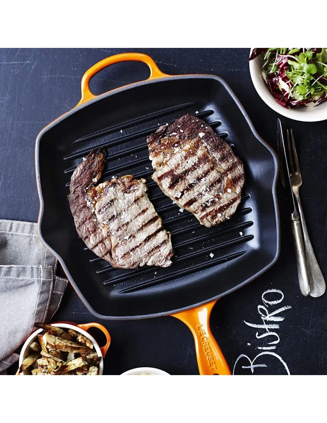 Sie können Ihre Speisen kross anbraten – mit unserer quadratischen Grillpfanne aus Gusseisen werden alle wichtigen Feuchtigkeits- und Geschmacksstoffe beibehalten. Perfekt für schmackhaftes, gesundes Kochen – das Fett läuft einfach ab und sammelt sich in den Rillen. Dieses Multitalent hilft Ihnen, mühelos Fleisch, Fisch und auch Gemüse zuzubereiten.