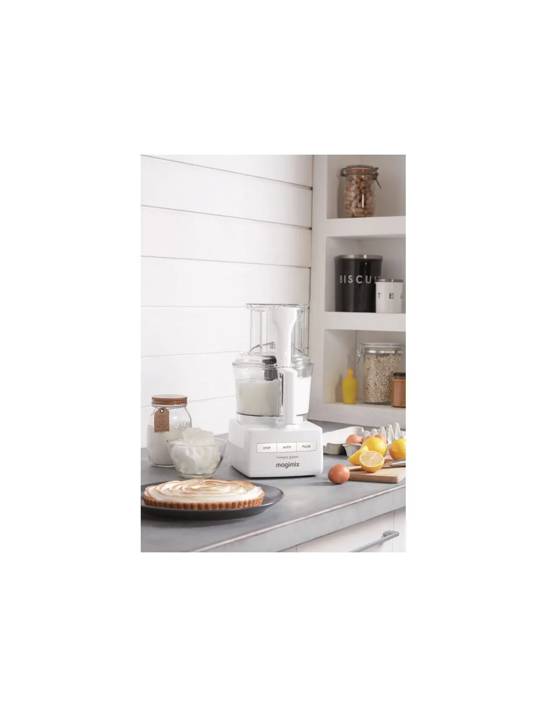 Vorbei sind die Zeiten, in denen Küchenmaschinen häufig nur lästige Vorbereitungen wie Zwiebelschneiden erleichtert haben – die Magimix Compact System 3200 XL Küchenmaschine kann noch vieles mehr! Die Compact 3200 XL ist der perfekte Küchenassistent für Ihren zwei bis drei Personenhaushalt. Mit Hilfe der Magimix Küchenmaschine können Sie fast alle Verarbeitungen mit nur einem einzigen Gerät durchführen – egal ob Sie Brotteig kneten, Eischnee schlagen oder Suppen pürieren möchten. Sämtliche Funktionen lassen sich mit nur drei Tasten nutzen – kinderleicht!