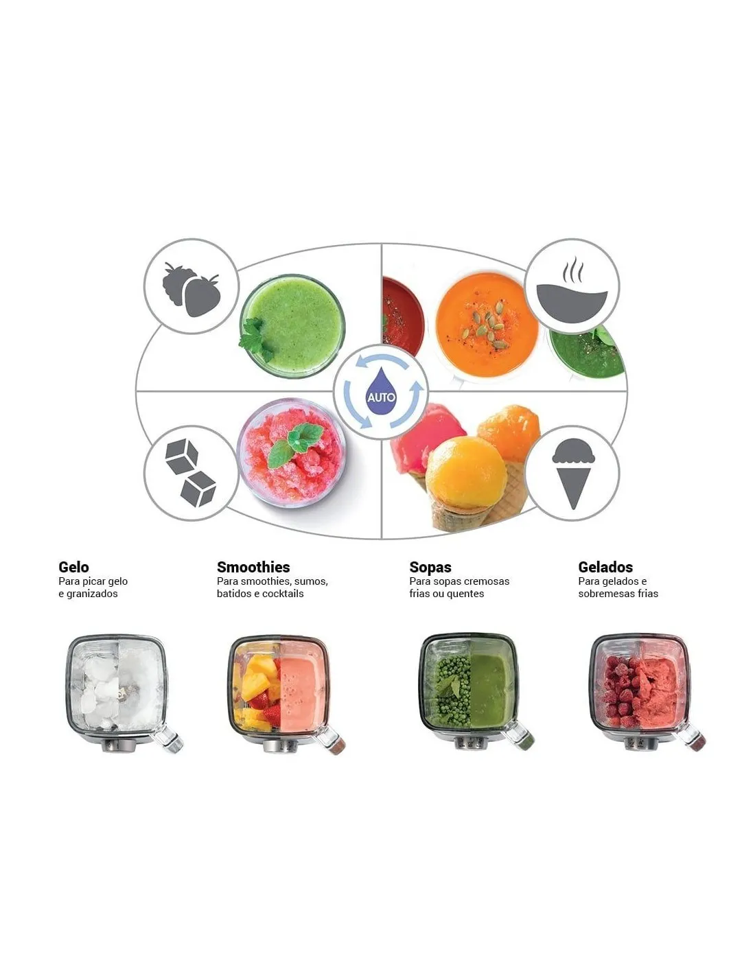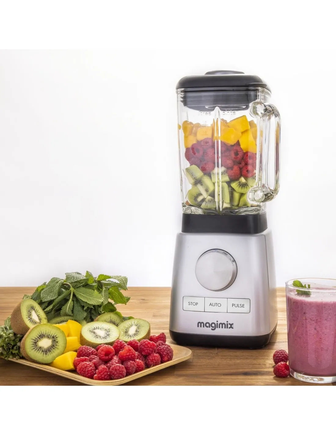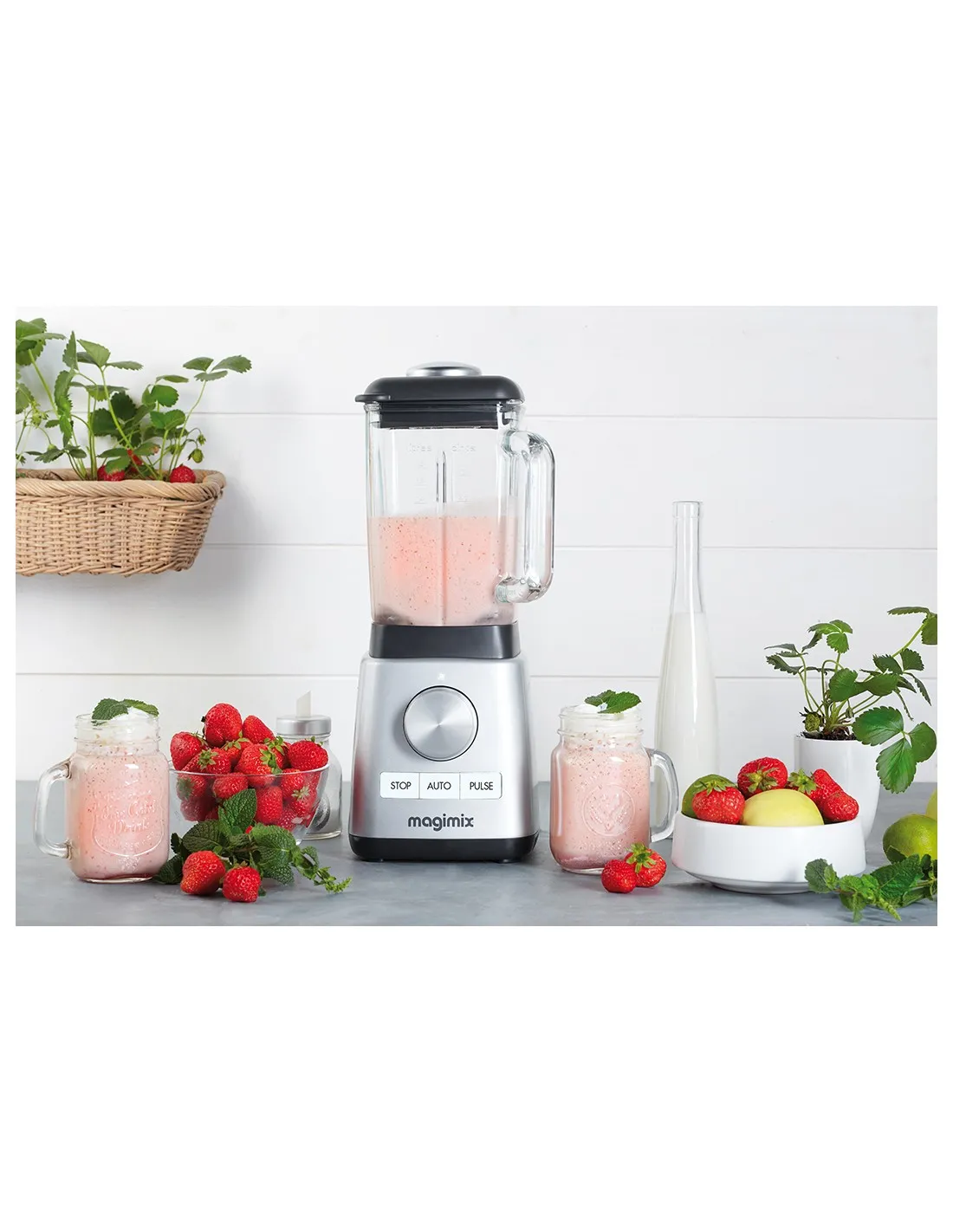Der Magimix Power Blender arbeitet sehr vielseitig. Sie können sowohl mixen als auch pürieren, Eis zerstoßen und automatisch reinigen. Es gibt vier Geschwindigkeitsstufen sowie Vorwahltasten für Eis (Ice), Smoothie, Suppen (Soups) und Desserts/Eis und Reinigungsprogramm - so einfach wie möglich und mit köstlichen Ergebnissen. Die PULSE-Taste ist ein weiterer Vorteil: sie sorgt dafür, dass der Mixer im Intervallmodus arbeitet und somit Suppen beispielsweise noch sämiger werden lässt. Der Glasbehälter besteht aus hitzeunempfindlichen und spülmaschinenfesten Boroclass-Glas.