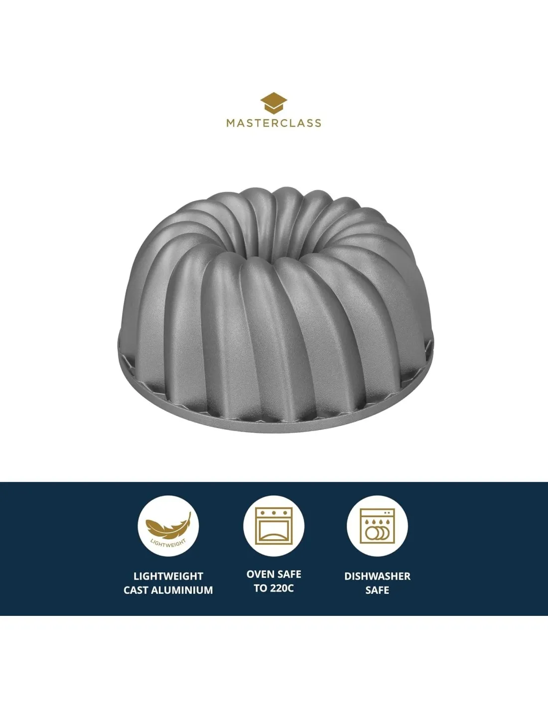 Mit der dekorativen Swirl-Kuchenform aus Aluminiumguss von MasterClass sind Sie bestens gerüstet für die ultimative Präsentation Ihrer Torten. Diese Kuchenform zeichnet sich durch ihre geschwungene, wirbelnde Silhouette aus, die sich perfekt für die Kreation eines aufwändigen Kuchens, Desserts oder Champagner-Gelees eignet. Sie ist aus leichtem Aluminiumguss gefertigt, der für eine gleichmäßige Wärmeverteilung sorgt, während die Antihaftbeschichtung dafür sorgt, dass Ihr Kuchen oder Ihr Dessert leicht aus der Form gleitet und alle stilvollen Details erhalten bleiben. Alle nordischen Kuchenformen von MasterClass sind backofen- und spülmaschinenfest und werden mit einer lebenslangen Garantie und einer 5-Jahres-Garantie auf die Antihaftbeschichtung geliefert, damit Sie sich keine Sorgen machen müssen.