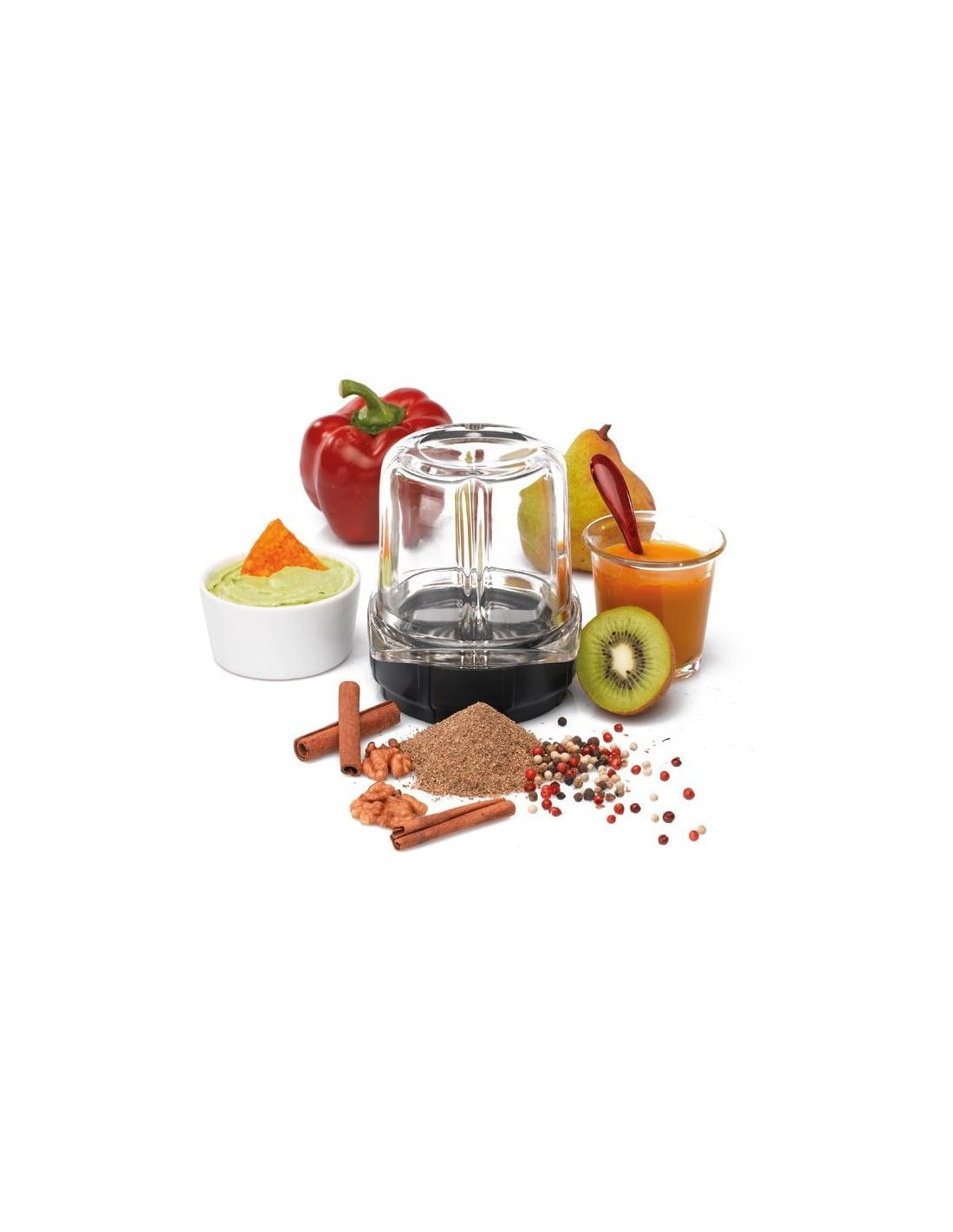 Der Mini-Becher aus Glas ist für eine einfache und effiziente Nutzung konzipiert und ermöglicht das Mixen, Mahlen und Vermengen verschiedener Zutaten mit mehr Komfort. Die sehr widerstandsfähige Glaskonstruktion unterstützt eine lange Haltbarkeit, während das vollständig zerlegbare Set die Nutzung und Pflege erleichtert.