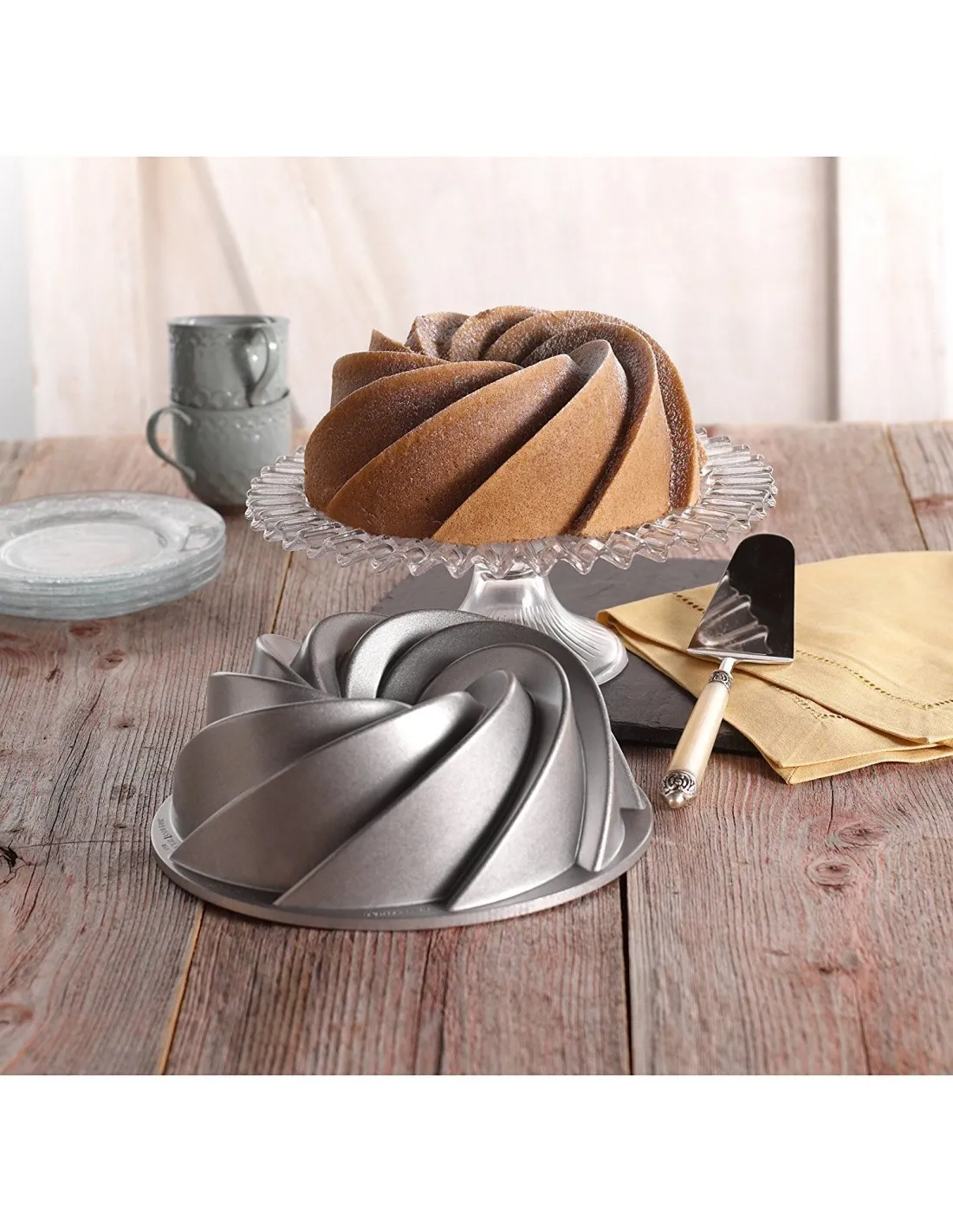 Das wirbelnde Design dieser Gugelhupfform ergibt einen einzigartigen Kuchen, der jedem Anlass Eleganz verleiht. Das Wirbeldesign sieht mit oder ohne Glasur, Zuckerguss oder einem Hauch von Puderzucker wunderbar aus. Das Nordic Ware Aluminiumguss-Backgeschirr bietet feine Details und eine hervorragende Backleistung. Die robuste Alugussform verteilt die Wärme schnell und gleichmäßig und sorgt so für gleichmäßiges Aufgehen, gleichmäßiges Backen und eine goldene Kruste. Das Mittelrohr leitet die Wärme in die Mitte des Kuchens und sorgt so für gleichmäßiges Backen. Die antihaftbeschichtete Innenseite sorgt für müheloses Lösen und Reinigen. PFAO-frei.