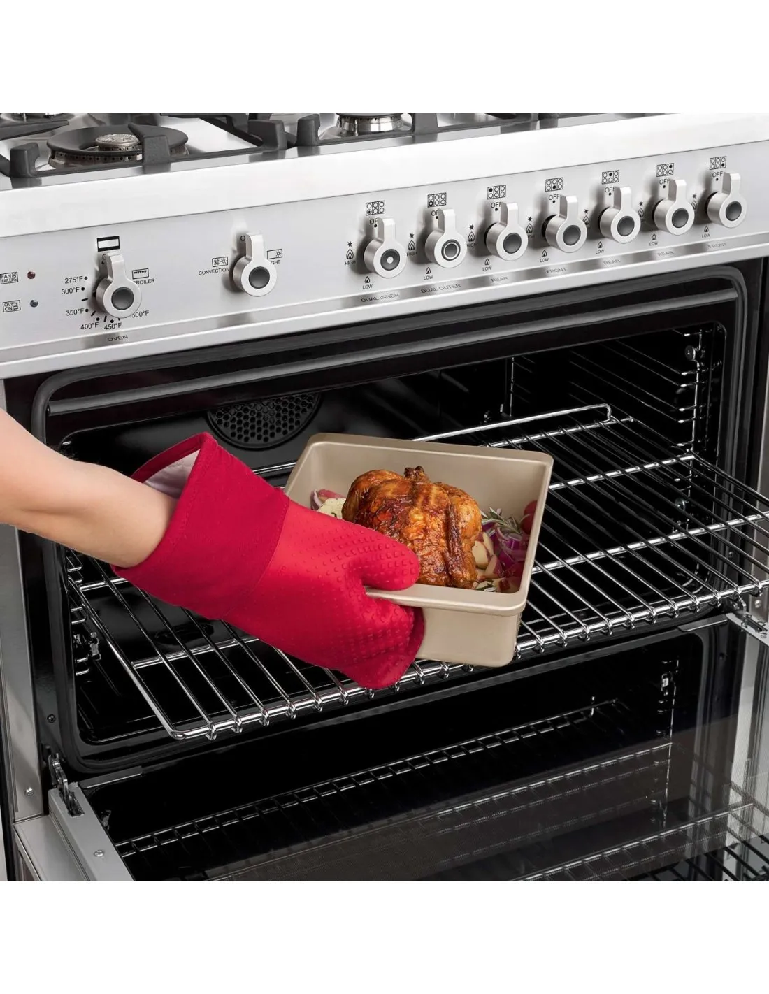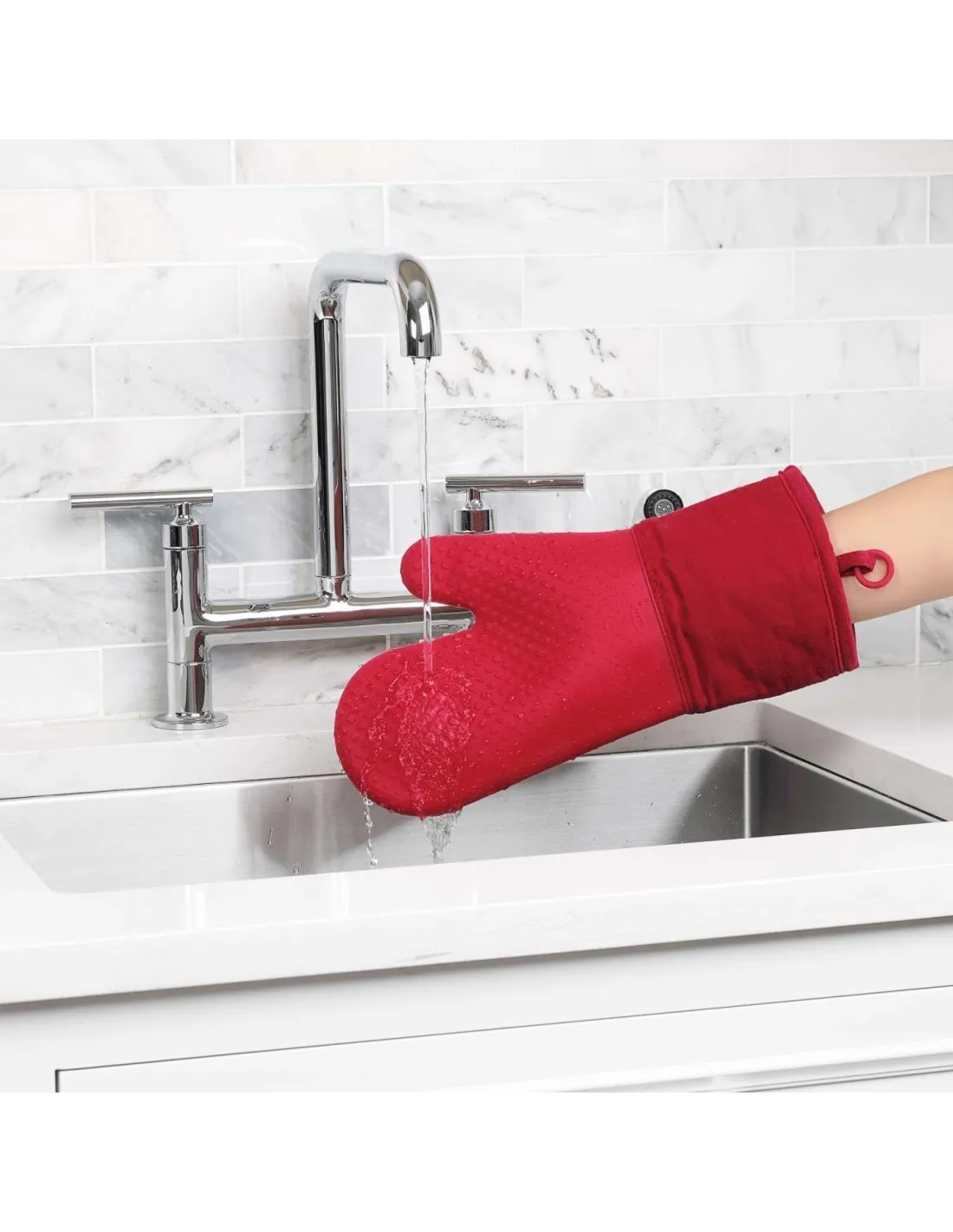 Dieses 2er-Topf-Griffschutz-Set von Le Creuset ermöglicht ein einfaches Handling des heißen Topfes. Sie sind geformt wie Ofenhandschuhe und kommen immer gelegen, wenn Sie heiße Töpfe und Pfannen aus dem Backofen auf den Herd oder Tisch stellen möchten. Sie bestehen aus 100 % Baumwolle, sind hitzebeständig und lassen keinen Dampf durch. Außerdem sind sie...