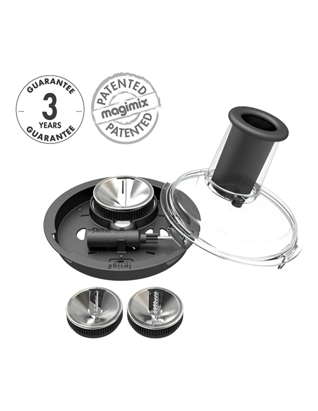 Kompakt und leicht zu verstauen, wurde der Spiral Expert für den komfortablen täglichen Einsatz entwickelt. Die Kegel und die Verlängerung lassen sich im Halter aufbewahren, und alle Teile lassen sich schnell reinigen und sind spülmaschinengeeignet. Außerdem sind ein Heft mit Rezeptideen sowie Zugang zur Magimix App enthalten, um neue Zubereitungen zu entdecken.