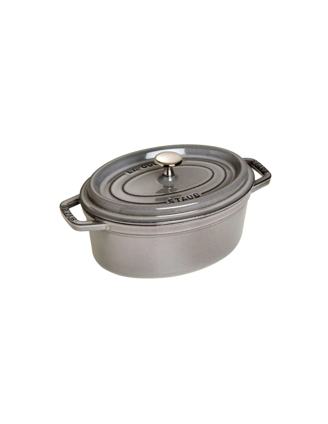 Für Schmorgerichte, Braten und andere Speisen, die lange Zeit im Ofen verbringen sollen, ist die ovale Cocotte in Schwarz ideal. Es handelt sich um einen 23 cm großen Schmortopf, der Ihnen im Alltag behilflich sein wird. Mit einer Höhe von 14 cm können Sie in diesem Topf, der 2,35 l fasst, allerlei Gerichte zubereiten. Sie können die Cocotte sowohl im Ofen verwenden als auch auf allen bekannten Herdarten inklusive Induktion. Das Geheimnis der Cocottes ist ihr besonderer Aufbau. Der Hersteller Staub hat dabei auf eine kohlenstoffreiche Verbindung zwischen Gusseisen und einem Emailleüberzug gesetzt. Dieser Überzug besteht zum Großteil aus Glas, weshalb eine hervorragende Weiterleitung der Wärme möglich ist. Die gesamte Hitze wird schnell und gleichmäßig verteilt, sodass der Schmortopf aus der Serie La Cocotte von oben bis unten gleichmäßig erhitzt. Hinzu kommt die Tropfenstruktur des Deckels. Beim Kochen und Schmoren bildet sich Kondenswasser, das wieder in den Garvorgang zurückgeleitet werden muss. Dies ist durch die besondere Form der Innenseite des Deckels möglich, die das Wasser gleichmäßig über das Gargut verteilt. Somit kann das Fleisch herrlich zart werden und Gemüse sein volles Aroma entfalten. Zusätzlich ist das Gusseisen sehr robust und erlaubt eine einfache Handhabung. Probieren Sie Ihr eigenes Schmorgericht aus und entdecken Sie die praktische Cocotte von Staub für sich und Ihre Küche.