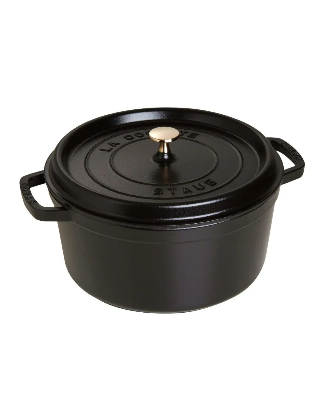 Cocottes wurden schon vor langer Zeit in Frankreich erfunden. Sie sind die traditionellen Schmortöpfe, in denen französische Spezialitäten wie das Boeuf Bourguignon oder ein Coq au Vin besonders gut gelingen. In diesem Schmortopf bereiten Sie daher mühelos viele köstliche Schmorgerichte der französischen Küche zu. Ebenso gut können Sie diesen Topf aber auch für ein leckeres Gulasch oder einen deftigen, deutschen Eintopf nutzen. Die runde Cocotte besteht aus emailliertem Gusseisen. Dadurch wird ein besonders guter Brat- und Schmoreffekt erreicht. Zugleich verstärkt das beschichtete Gusseisen den natürlichen Eigengeschmack von Fleisch, Gemüse und anderen Lebensmitteln. Die innen mattschwarz emaillierte Cocotte verteilt die Hitze gleichmäßig bis an den Rand, sodass alle Zutaten im Schmortopf mit der gleichen Geschwindigkeit gegart werden. Die Verbindung aus Gusseisen und Emaille sorgt außerdem für eine schonende Garung, sodass die Vitamine erhalten bleiben. Die schwarze Cocotte von Staub hat einen Durchmesser von 30 cm und ist mit Deckel 19 cm hoch. Ihr Fassungsvermögen beträgt 8,35 l, sodass Sie diesen Schmortopf auch für die Bewirtung mehrerer Gäste – beispielsweise bei einer Familienfeier – verwenden können. Mit diesem Bräter der Serie La Cocotte bereiten Sie zudem nicht nur köstliche Schmorgerichte zu, diese können Sie in dem Schmortopf anschließend auch Ihren Gästen präsentieren.