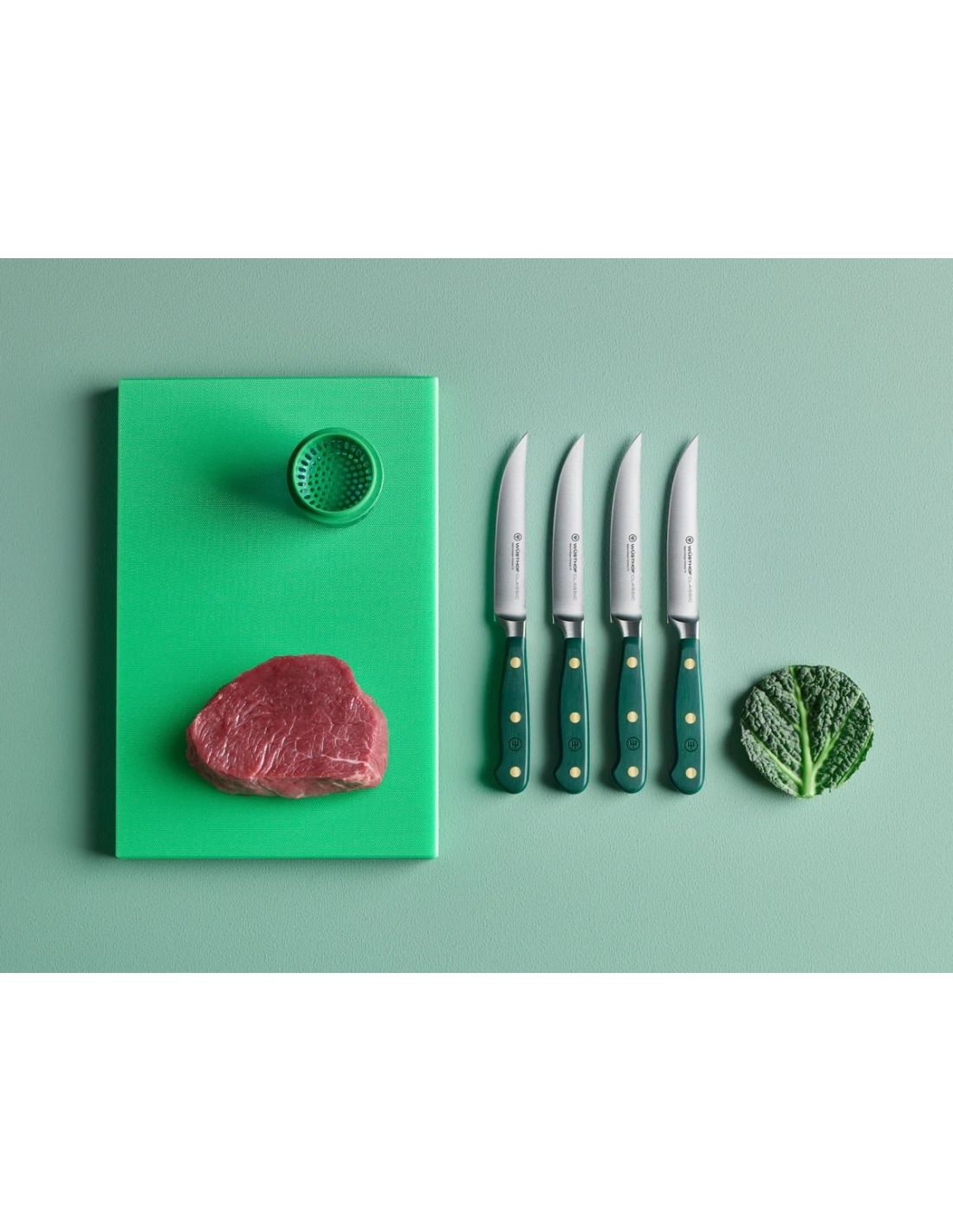 Das Wüsthof Classic Colour 4-teiliges Steakmesser-Set ist eine elegante und funktionale Wahl für präzises und komfortables Schneiden bei Tisch. Als Teil der Classic Serie wurde dieses Set dafür entwickelt, Fleisch und andere bei Tisch servierte Speisen sauber und effektiv zu schneiden und dabei Leistung mit einer stilvollen Präsentation zu verbinden.
