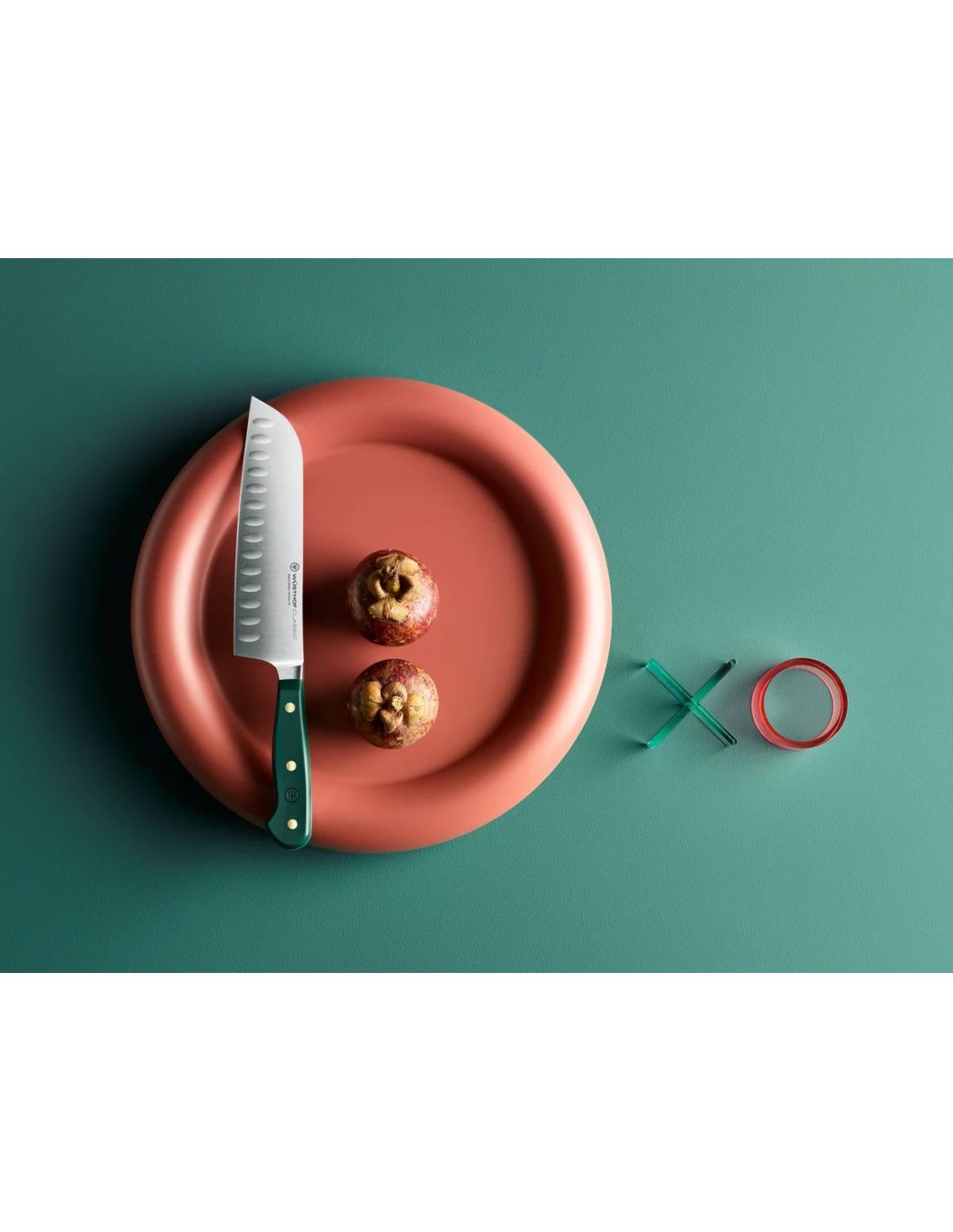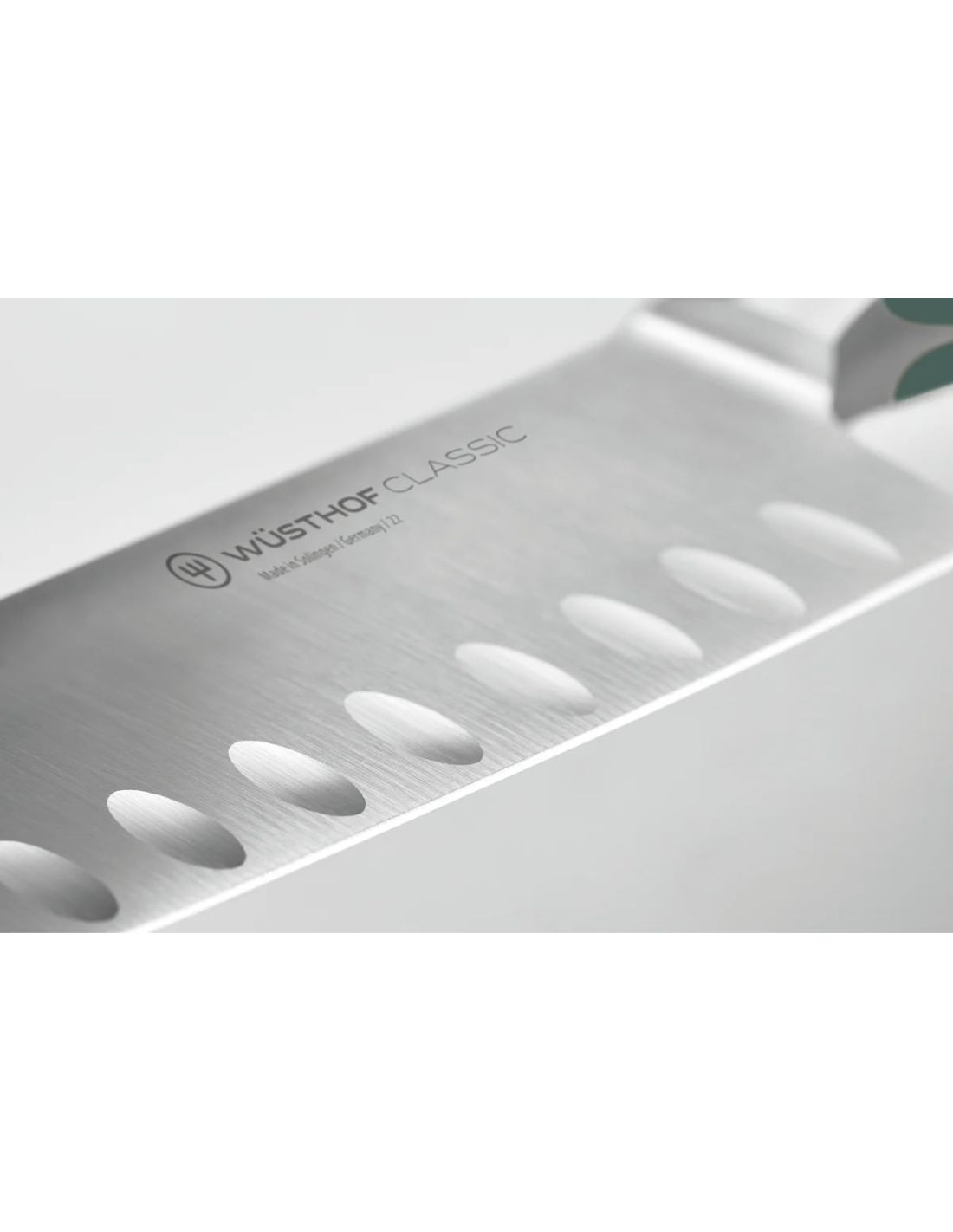 Als Teil der Wüsthof Classic Colour Serie verbindet dieses Santoku geschmiedete Konstruktion, Stabilität und hohen Komfort in der Anwendung. Es ist eine ausgezeichnete Wahl für alle, die ein präzises, vielseitiges und alltagstaugliches Messer suchen.