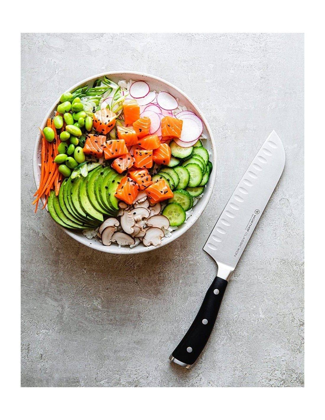 Das Wüsthof Classic Ikon Santoku mit Kullenschliff 17 cm ist ein vielseitiges und ausgewogenes Messer, das von der traditionellen japanischen Form inspiriert ist und sich hervorragend für die täglichen Vorbereitungsarbeiten eignet. Durch Form, Gewicht und Schliff ist es eine ausgezeichnete Alternative zum klassischen europäischen Kochmesser und bietet Kontrolle, Präzision und einen flüssigen Schnitt.
