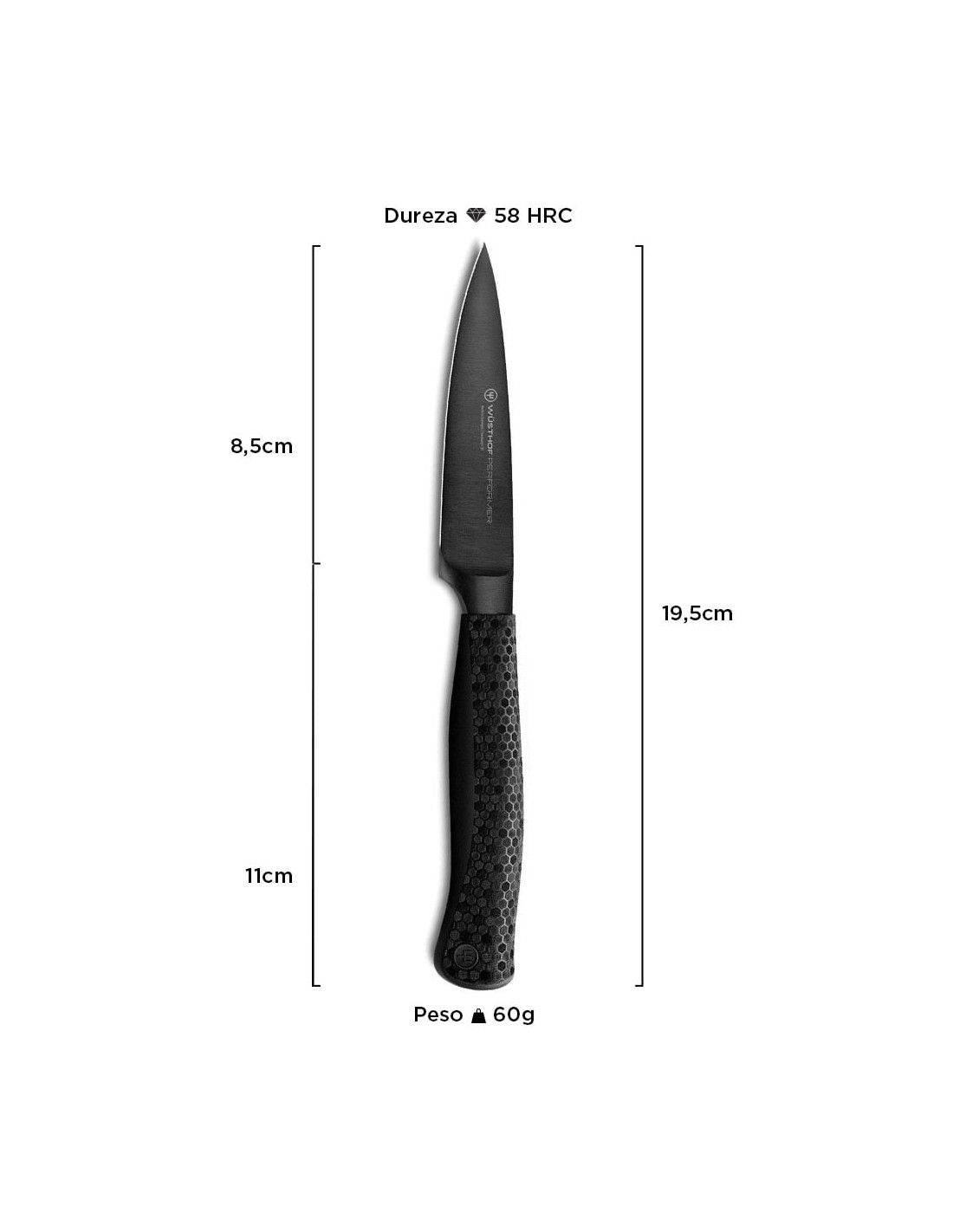 Wüsthof hebt bei dieser Serie die tiefschwarze Diamond-Like Carbon (DLC)-Beschichtung hervor, die die Reibung reduziert, ein flüssigeres Schneiden ermöglicht und die Klinge besonders widerstandsfähig macht. Der ergonomische Griff mit Hexagon Power Grip-Struktur sorgt für sicheren, rutschfesten Halt, auch bei anspruchsvollen Arbeiten. Es ist eine ausgezeichnete Wahl für alle, die ein kleines Hochleistungsmesser mit Präzision und Komfort suchen.