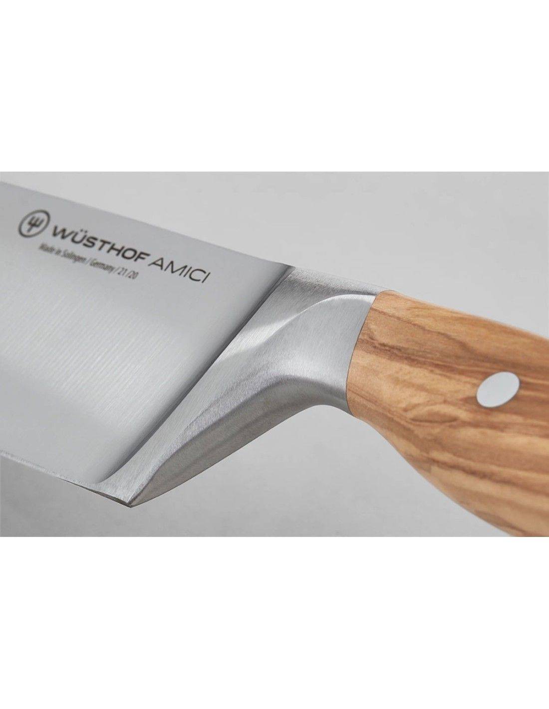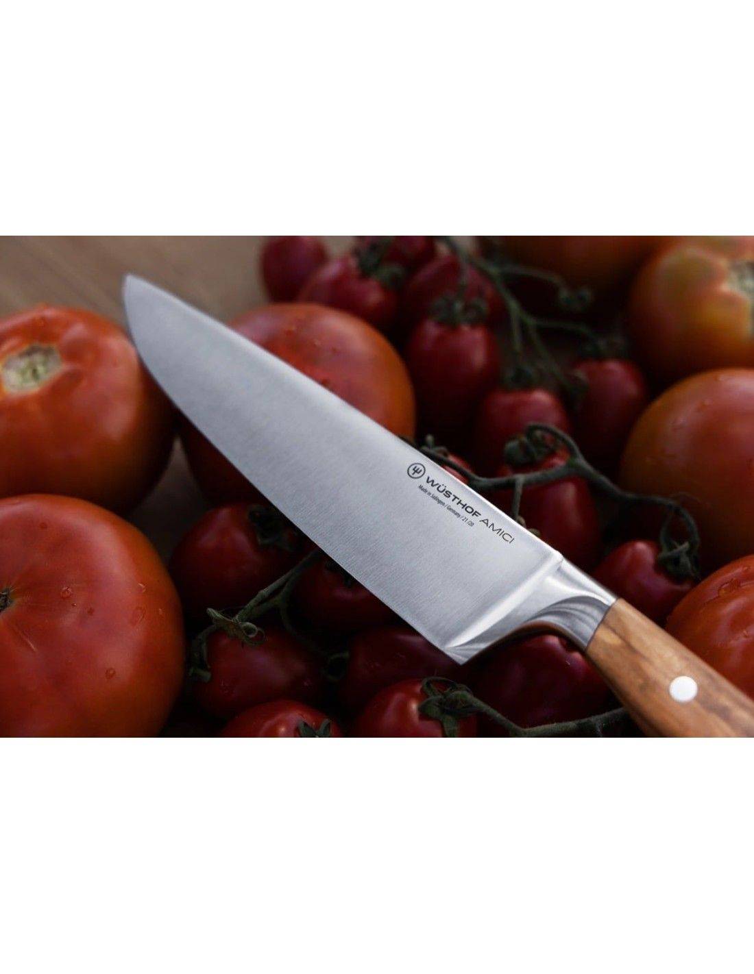 Das Wüsthof Amici Kochmesser 20 cm ist ein vielseitiges und unverzichtbares Küchenmesser für die täglichen Vorbereitungsarbeiten. Wüsthof beschreibt es als das Allzweckmesser der Serie, das sich für eine große Bandbreite an Zutaten und Schneidaufgaben eignet.