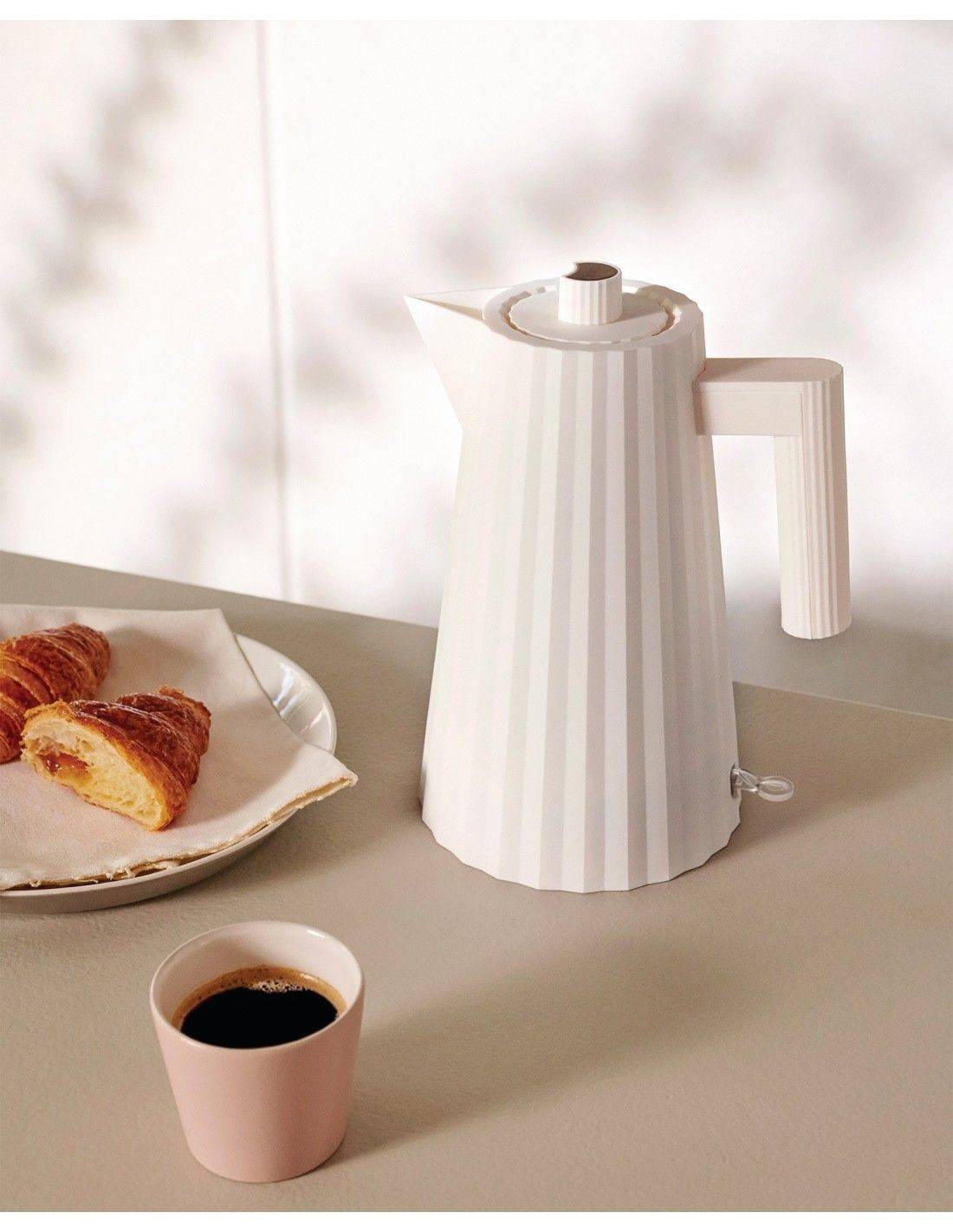 It is an excellent choice for anyone looking for a functional electric kettle with a distinctive visual identity, ideal for complementing modern kitchens with a designer piece. The Plissé design belongs to a collection known for its light and refined decorative language.