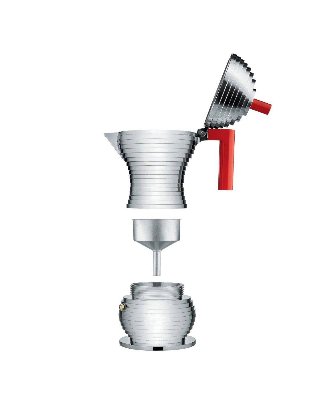 The Alessi Pulcina Induction Espresso Coffee Maker 6 Cups is an iconic contemporary design piece created by Michele De Lucchi, combining innovation, function and a distinctive aesthetic. Developed with technology refined in collaboration with illycaffè, it is designed to stop the extraction at the right moment, helping enhance the coffee’s aroma while avoiding the bitter aftertaste that can appear at the end of brewing.