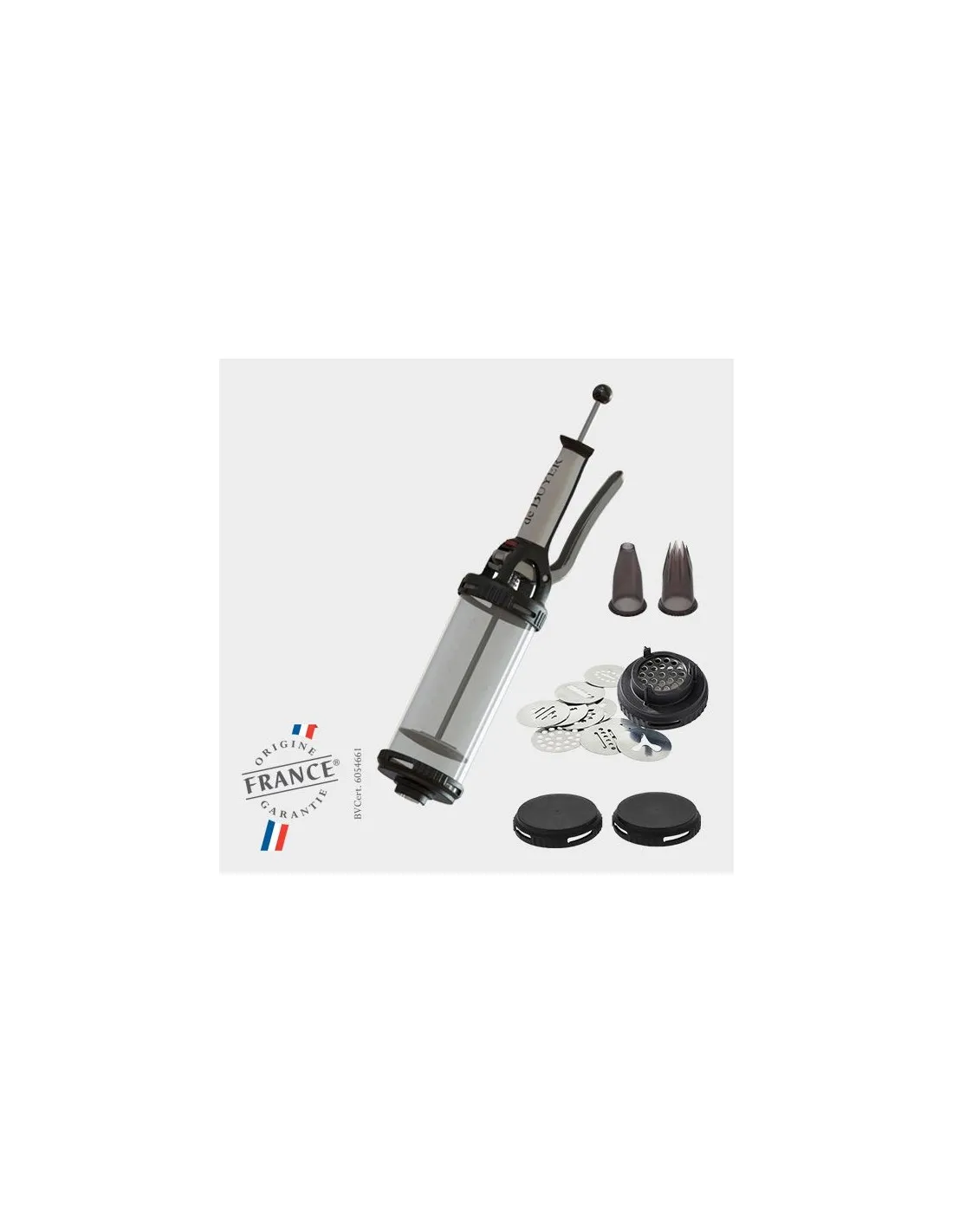 Supplied with 2 nozzles: 1 smooth and 1 fluted. Compatible nozzles: de Buyer nozzles made of transparent TRITAN; interchangeable.