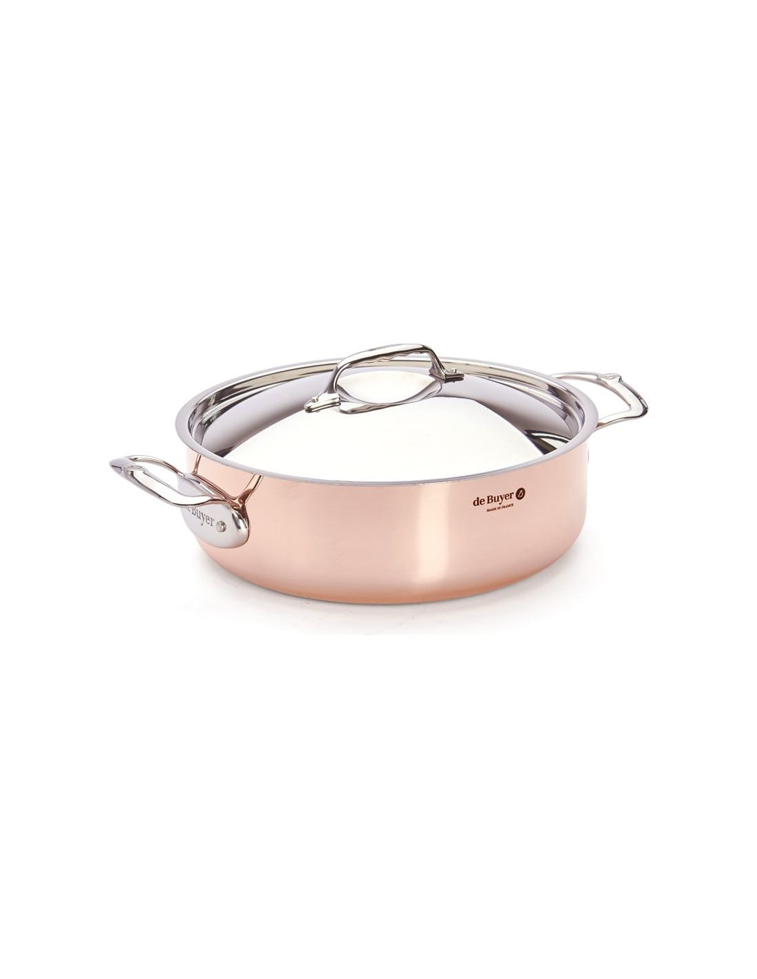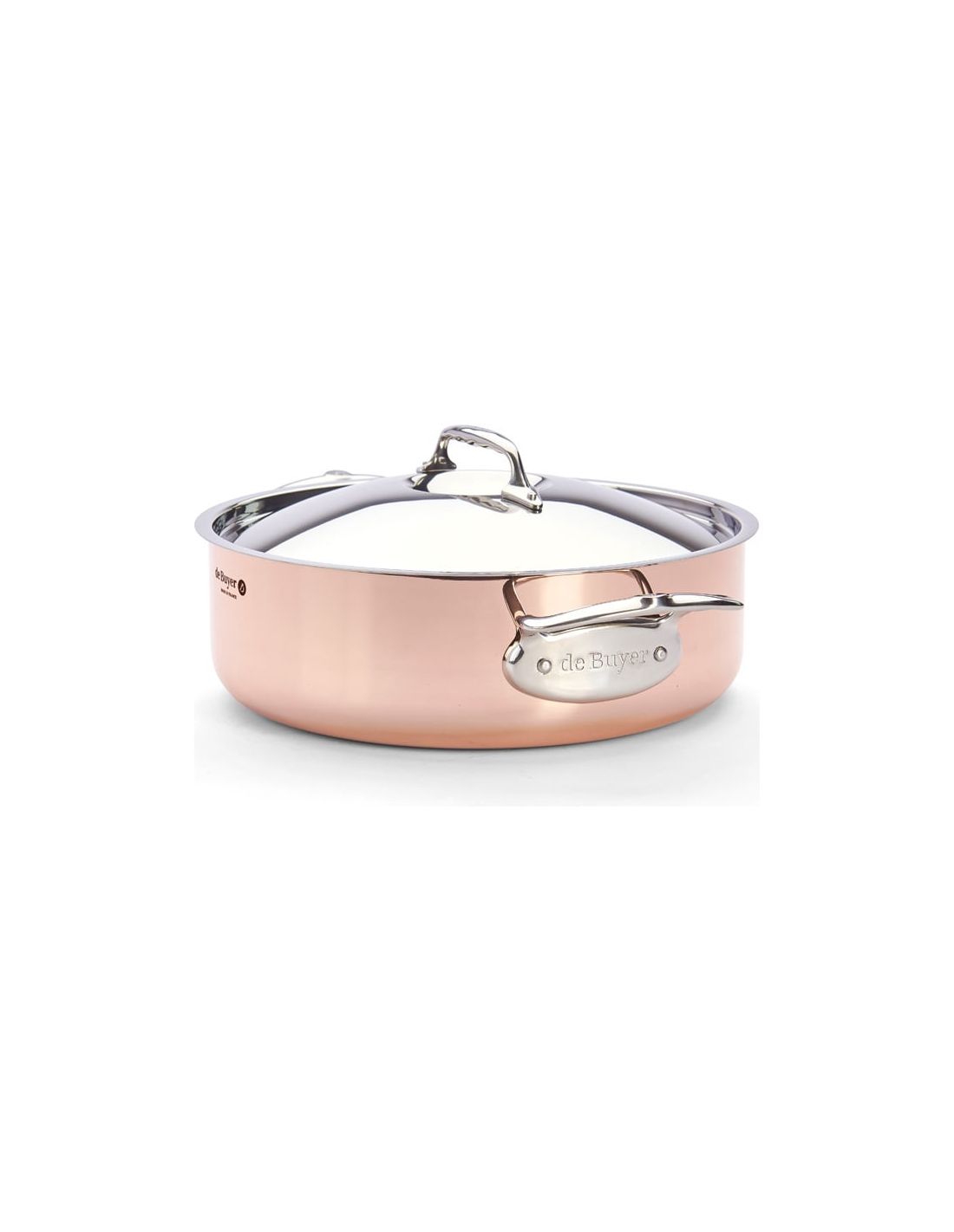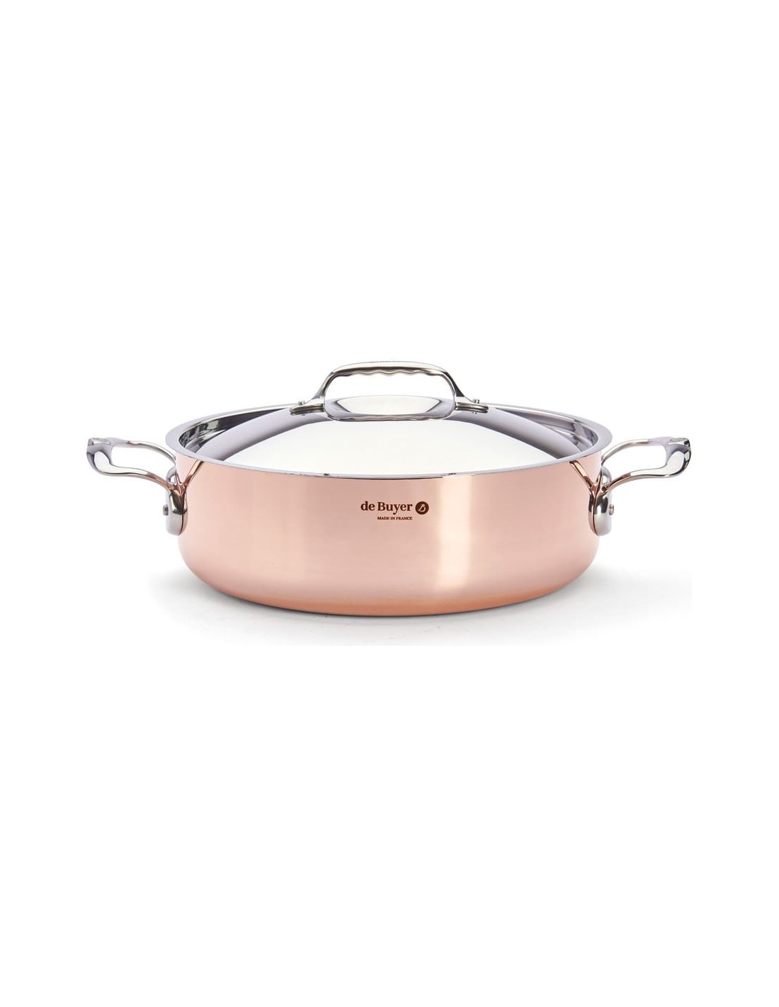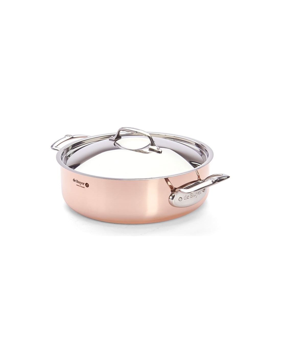 The de Buyer PRIMA MATERA Copper & Stainless Steel Sauté Pan with Lid is a premium cookware piece designed for cooks who want precision, elegance and total temperature control. Made with 90% copper on the outside and 10% stainless steel on the inside, it combines the outstanding heat conductivity of copper with the practicality and food safety of stainless steel. It is ideal for sautéing, browning, stewing, preparing sauces and other delicate recipes that require fast, even heating.