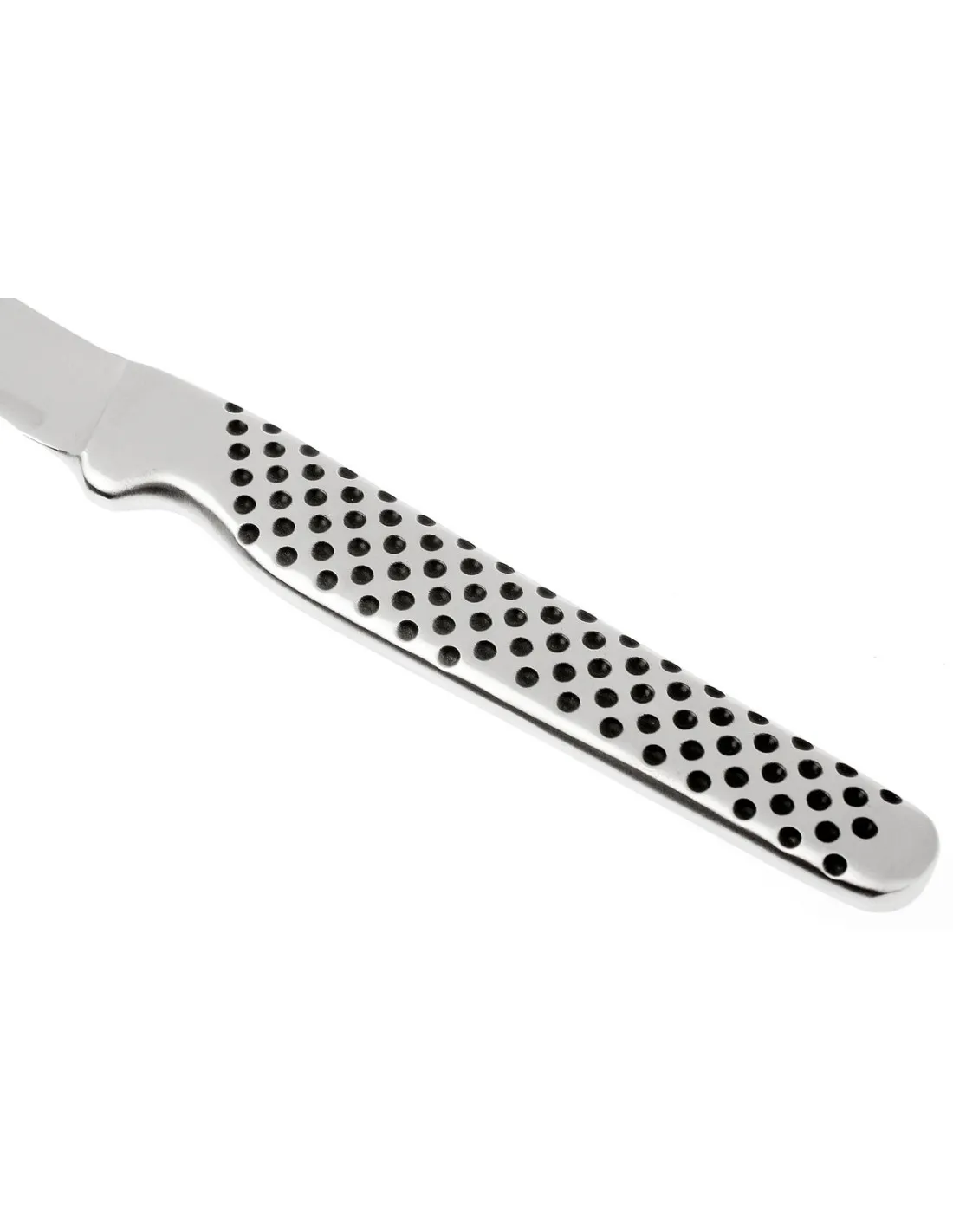 Peeling an apple becomes a simple pleasure with the small peeling knife from Global. The knife is very light and feels good in the hand. The small hollows in the handle allow an optimal grip. A knife that you will enjoy for many years. Aside from peeling an apple, the Global GSF 15 is also perfect for smaller cuts. The blade is constructed of a single piece of steel, with a unique convex edge for unsurpassed performance.Made of hollow handles which are then filled with sand to achieve the desired weight and deliver the perfect balance.Perfectly balanced knives provide optimal control.The blade is made of the finest stainless steel called CROMOVA 18 (Chromium, Molybdenum and Vanadium), designed exclusively for GLOBAL®.Ice tempered and hardened to Rockwell C56 - C58 degrees which holds the razor-sharp edge of the blade longer than any other steel.Ergonomic, stainless steel hygienic handles with signature dimple pattern offer a comfortable, slip-resistant grip.