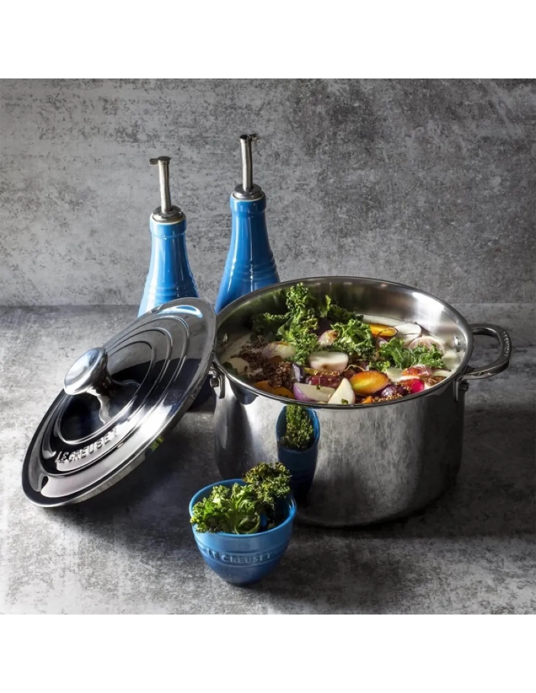 The Le Creuset 3-ply Plus Cookware Set features excellent heat conduction and distribution, making it ideal for boiling vegetables, simmering soup or creating flavourful stock. Ergonomic side handles make lifting and transferring the pot more convenient. The matching lid locks in heat and moisture during cooking and keeps food warm when served at the table.Each pan has a cleverly designed all–round pouring rim that lets you pour from any angle without messy drips. There are other equally thoughtful touches, like capacity markings and large side handles for easy lifting.Close fitting lids retain moisture and heat making our casseroles perfect for hob and oven cooking. The ergonomic side handles are comfortable to hold and are securely fixed with stainless steel rivets.