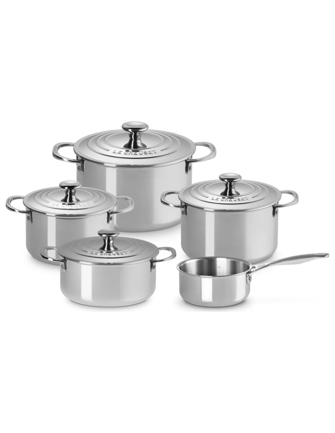The Le Creuset 3-ply Plus Cookware Set features excellent heat conduction and distribution, making it ideal for boiling vegetables, simmering soup or creating flavourful stock. Ergonomic side handles make lifting and transferring the pot more convenient. The matching lid locks in heat and moisture during cooking and keeps food warm when served at the table.Each pan has a cleverly designed all–round pouring rim that lets you pour from any angle without messy drips. There are other equally thoughtful touches, like capacity markings and large side handles for easy lifting.Close fitting lids retain moisture and heat making our casseroles perfect for hob and oven cooking. The ergonomic side handles are comfortable to hold and are securely fixed with stainless steel rivets.