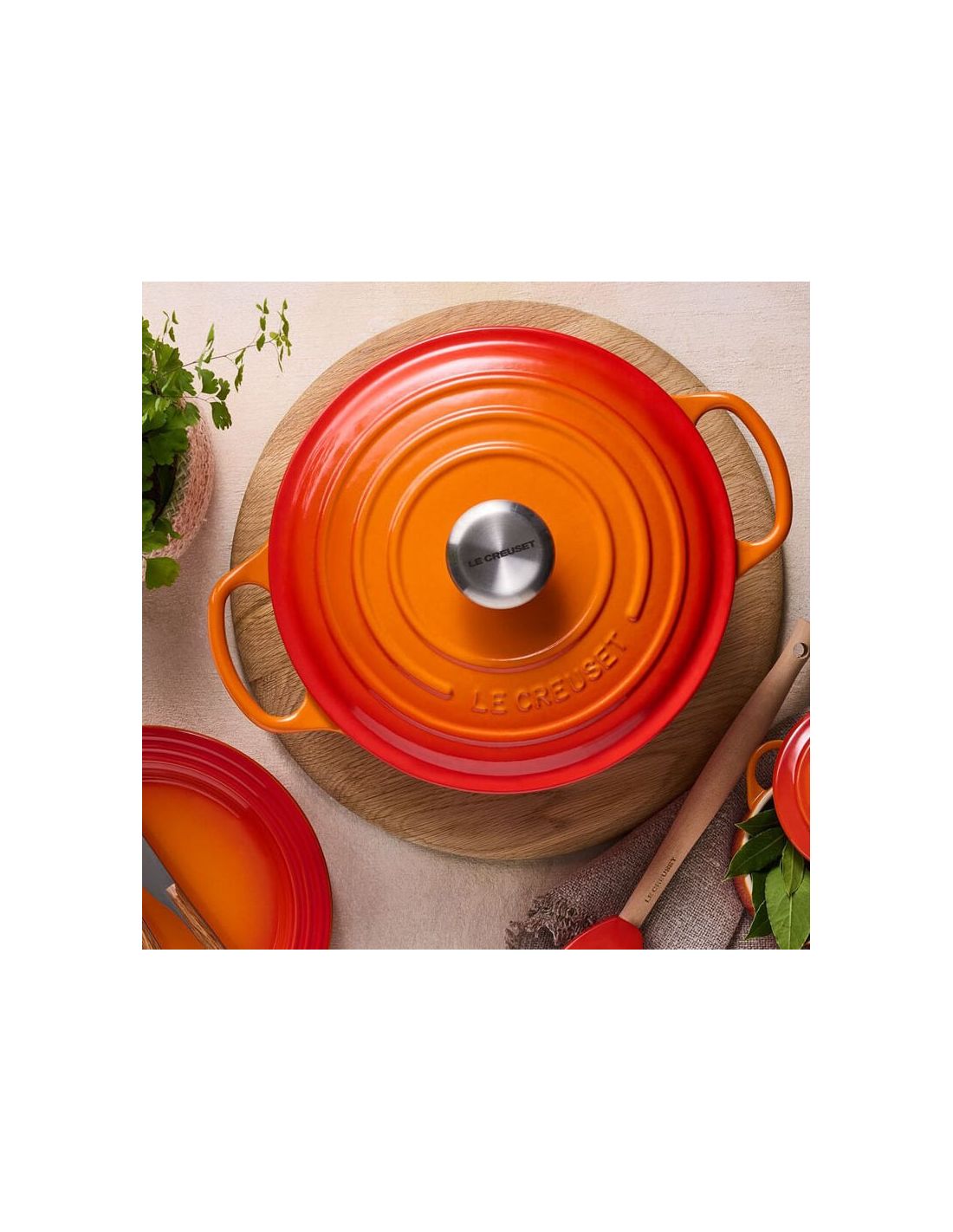The essential kitchen classic. From a fifteen minute pasta ragu to a slow-cooked, fragrant stew; from tender, juicy roasts to freshly baked bread and cakes that rise to perfection and bake evenly, the Round Cast Iron Casserole is ideal for a wide array of one-pot recipes. Now Le Creuset is proud to introduce the new Signature Round Casserole. New features include: easy-grip, 45% larger handles; easy clean, toughened enamel interior; a stylish, heat resistant stainless steel knob; and an enhanced tight-fitting lid. Suitable for use on all hob types, including induction, and in the oven, the casserole makes a perfect serving dish too as cast iron keeps food warmer for longer at the table. Individually cast in sand moulds and hand crafted at the original French foundry since 1925, Le Creuset casserole dishes are protected by a Lifetime Guarantee for total peace of mind.
