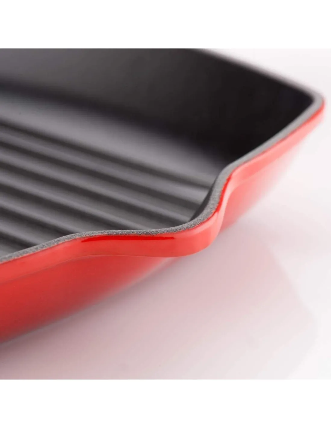 As cast iron grills can reach high heat on a medium setting, you can seal your food quickly and lock in the moisture, nutrients and flavours, producing succulent tasty meals. It is a very healthy way of cooking too as the cooking fat drains away and collects below the ribs.The new helper handle sets this new Signature Square Grillit® apart from others, for extra ease of use and stability when lifting a full pan. The grill is coated with Le Creuset’s specialist satin black enamel finish. Durable and easy to clean, the satin black enamel interior has been especially designed to protect the pan (no seasoning is required) and is ideal for searing and grilling foods such as meat, fish and vegetables.