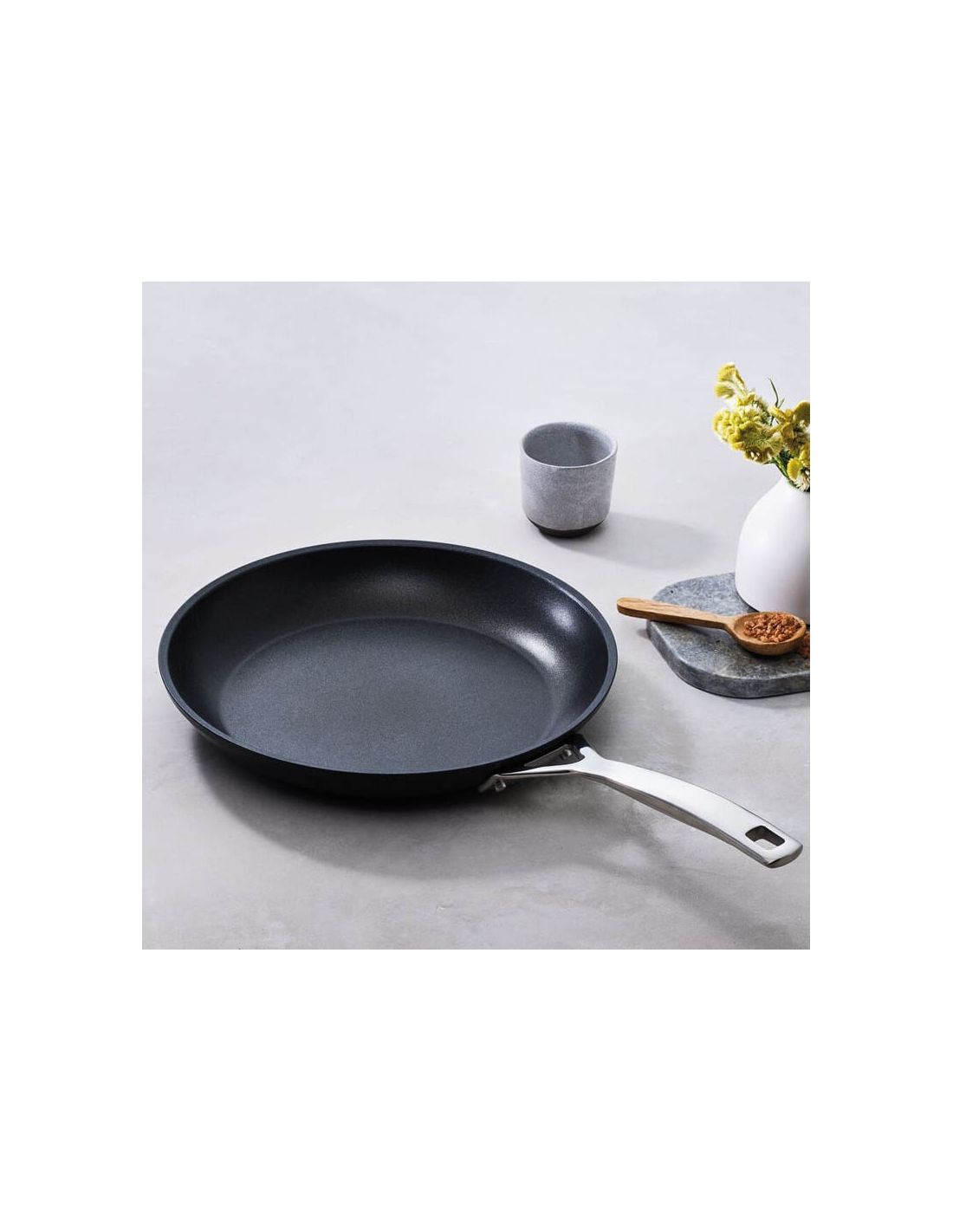 The ultimate tool in everyday cooking, the Shallow Frying Pan is a versatile essential. Toughened Non-Stick is a sleek range of versatile pans perfect for everyday use. It has a tough, PFOA-free non-stick surface inside and out, and a special hardened body to create a durable and long-lasting pan that can be used on any heat source. The easy release non-stick interior and exterior surfaces are easy to clean, and are tough enough to withstand use of metal utensils.Professional-style cast handles are attached with stainless steel rivets for a superior, secure fixing. Heat resistant glass lids are available separately. They retain moisture and flavour, and allow you to check the food you are cooking without lifting the lid and disturbing the cooking process or temperature.