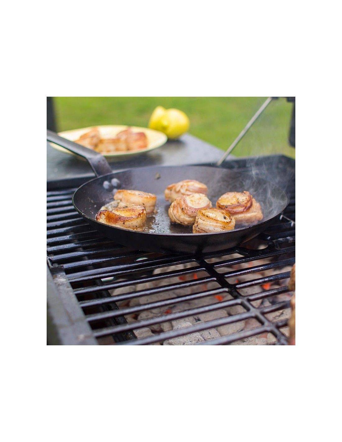It comes seasoned and ready to use, with an easy-release finish that improves with proper care over time. The long, comfortable handle helps you move easily from stovetop to oven or table. A practical choice for home kitchens, professional ranges and outdoor cooking alike.