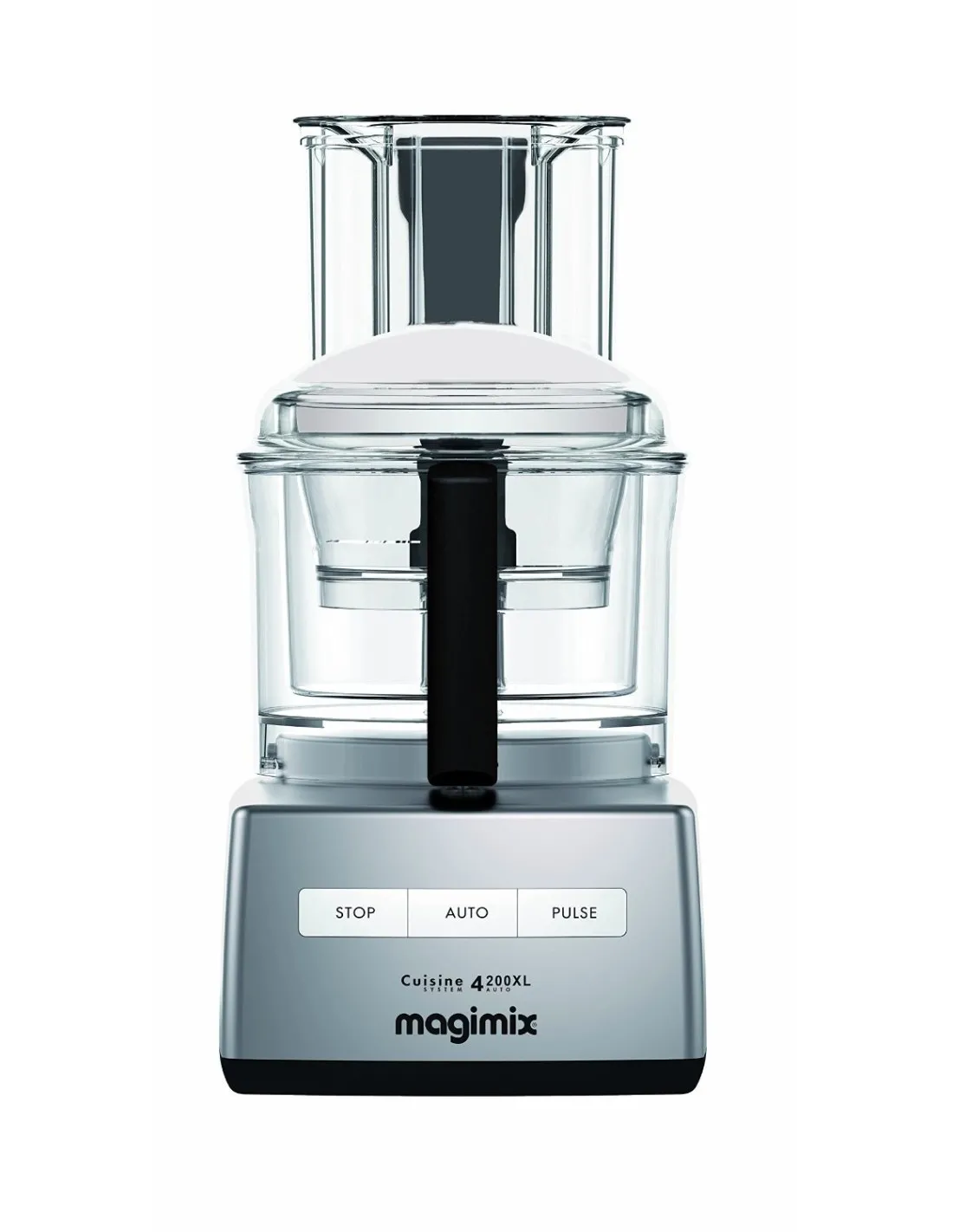 The Magimix CS 4200XL food processor can be used to slice, grate, chop, whisk, blend and bake. This is an ultra quiet machine and accessories include in pack include BlenderMix, dough blade, egg whisk, 2mm slicing and grating discs, 4mm slicing and grating discs, triple pusher. The machine comprises Stainless Steel Sabatier blades.There are also 3 Tritan bowls which makes this like 3 food processors in 1. The mini bowl can be used to process small quantities. The midi bowl is good for grating and slicing.The main bowl can handle the maximum quantities. With just three buttons (stop/auto/pulse) the Magimix motor automatically adjusts power depending on what’s in the bowl, making all your food preparation effortless.