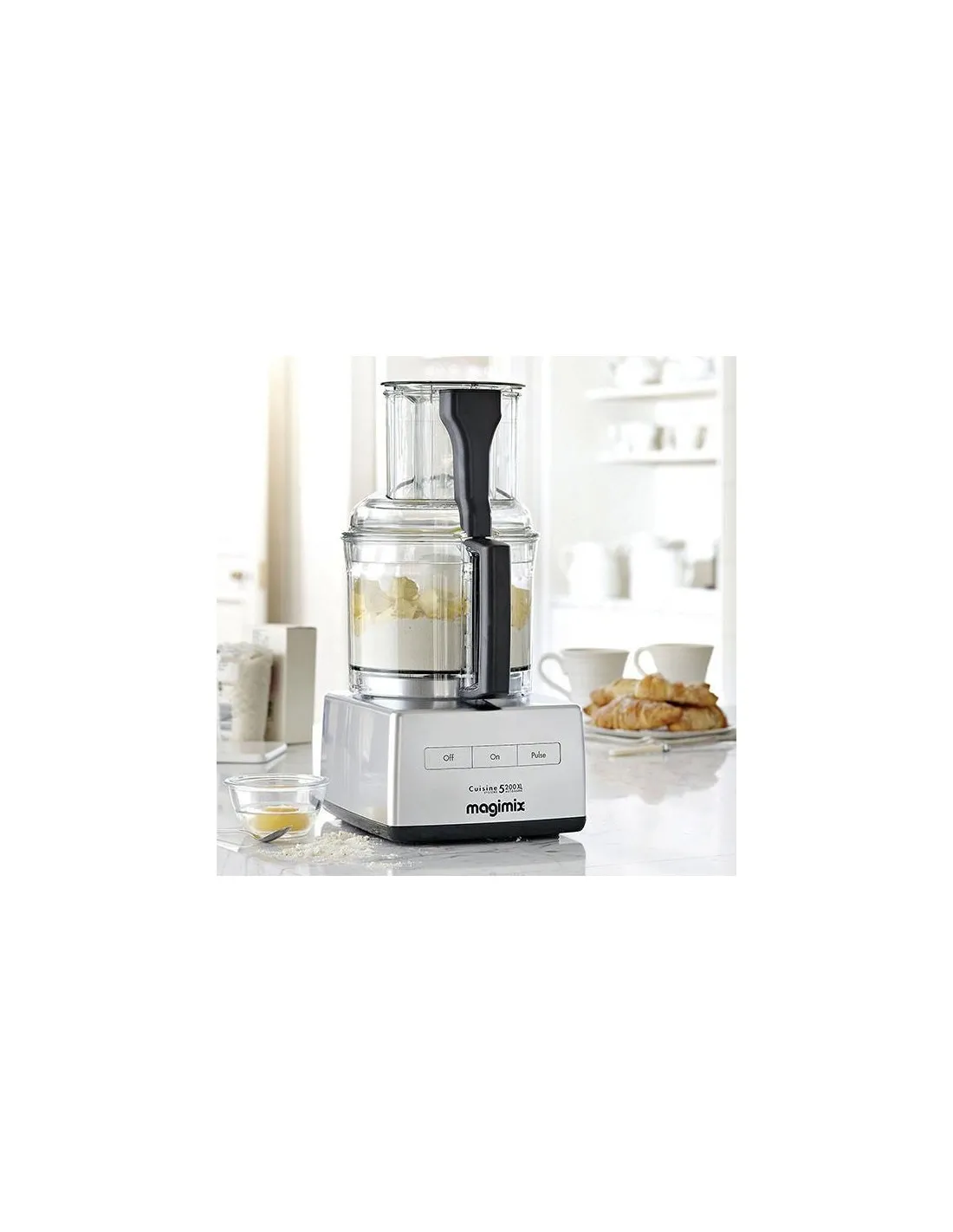 The Magimix CS 5200XL food processor can be used to slice, grate, chop, whisk, blend and bake. This is an ultra quiet machine and accessories include in pack include BlenderMix, dough blade, egg whisk, 2mm slicing and grating discs, 4mm slicing and grating discs, triple pusher. The machine comprises Stainless Steel Sabatier blades.There are also 3 Tritan bowls which makes this like 3 food processors in 1. The mini bowl can be used to process small quantities. The midi bowl is good for grating and slicing.The main bowl can handle the maximum quantities. With just three buttons (stop/auto/pulse) the Magimix motor automatically adjusts power depending on what’s in the bowl, making all your food preparation effortless.