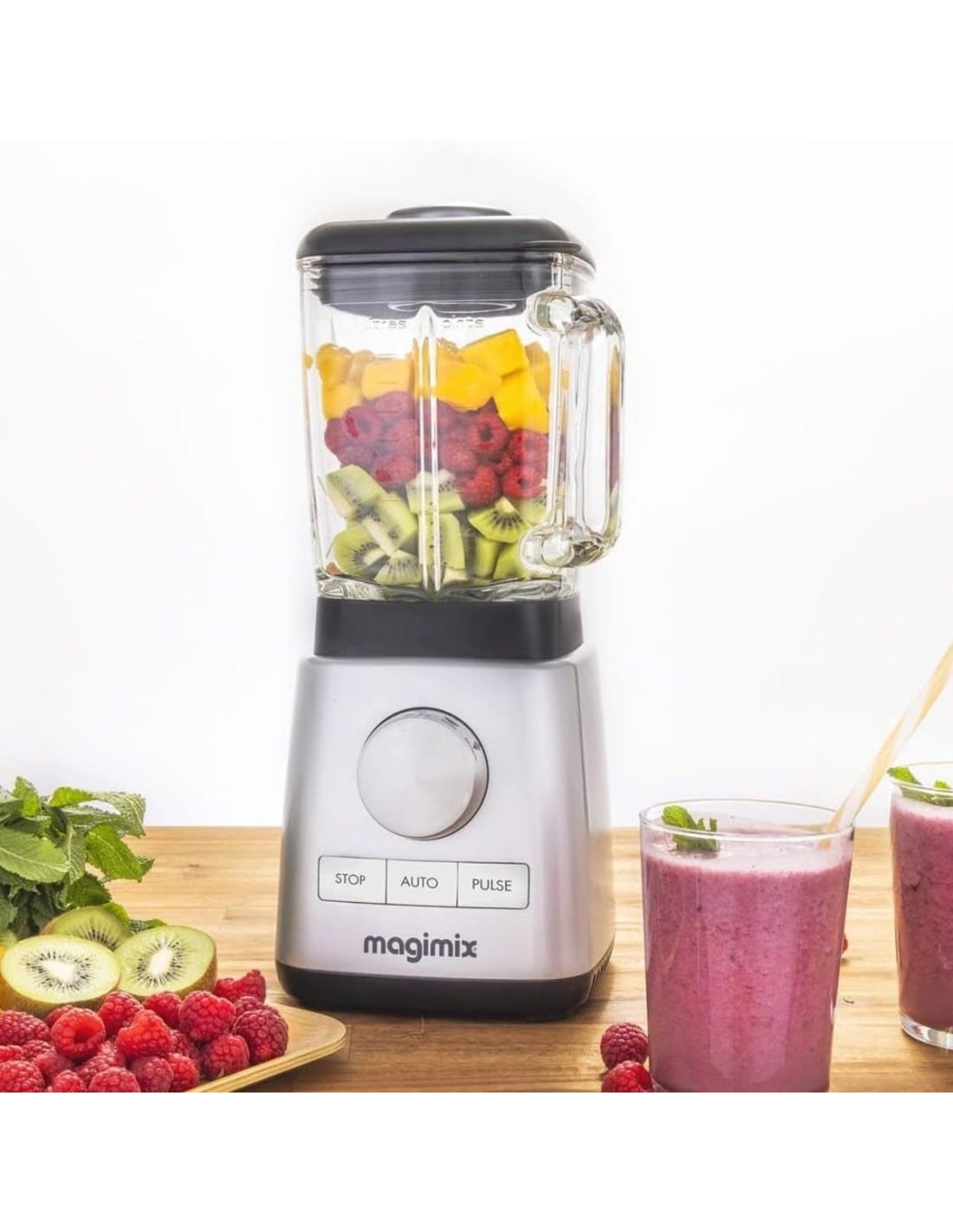 The Magimix Power Blender 3 is a compact and efficient blender, ideal for preparing smoothies, soups, crushed ice, frozen desserts, and other preparations quickly and consistently. With 1000W of power, up to 15000rpm, and a 1.2L working capacity, it is a practical choice for everyday use and especially suitable for small kitchens and for up to 3 people.