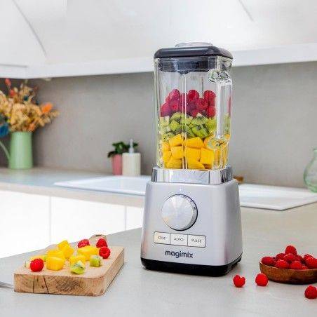 Perfect for a healthier lifestyle and time saving the Magimix Blender Power has 5 high-performance automatic programmes, including auto-clean, so you can effortlessly prepare perfect smoothies, soups, desserts, cocktails and more at the touch of a button and wash up with a touch of another. The 2L Borosilicate glass jug is very durable, non-porous and capable of mixing both hot and cold liquids all the whilst ensuring its cold mix technology maintains temperature so that no nutrients are lost in the blending process.