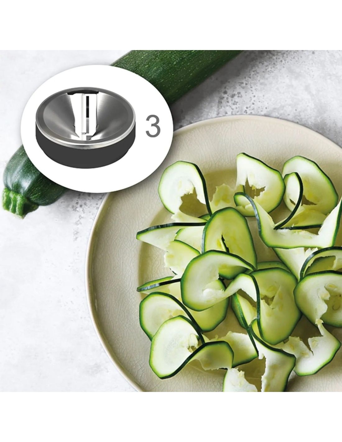 - Use: Spiral cutting of fruit and vegetables