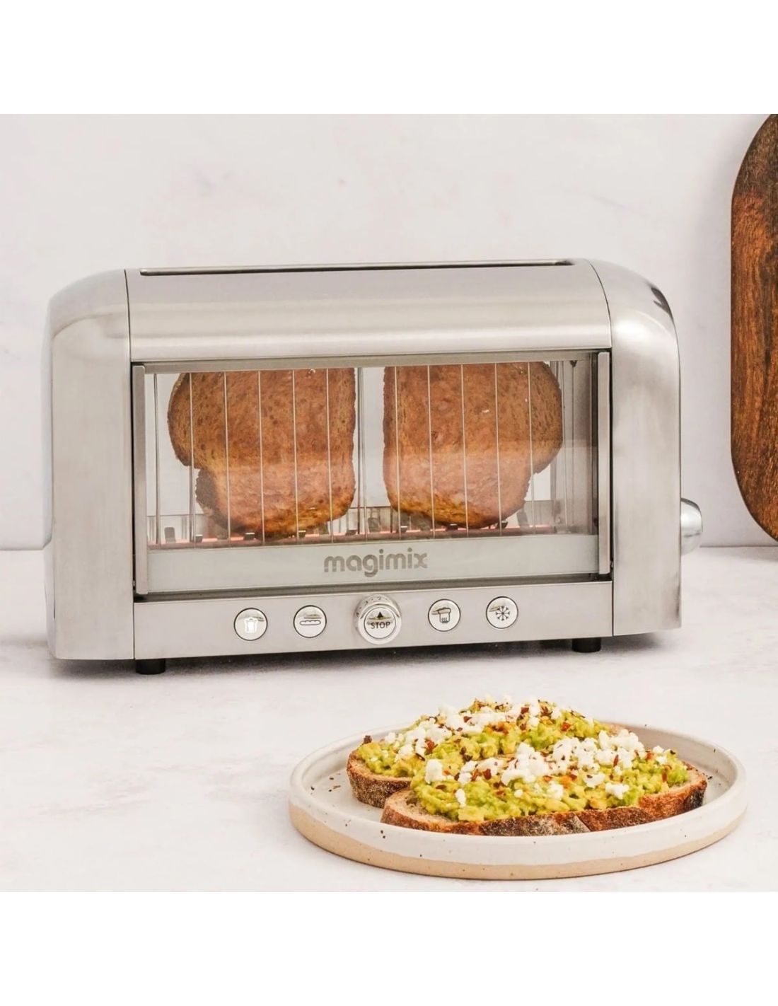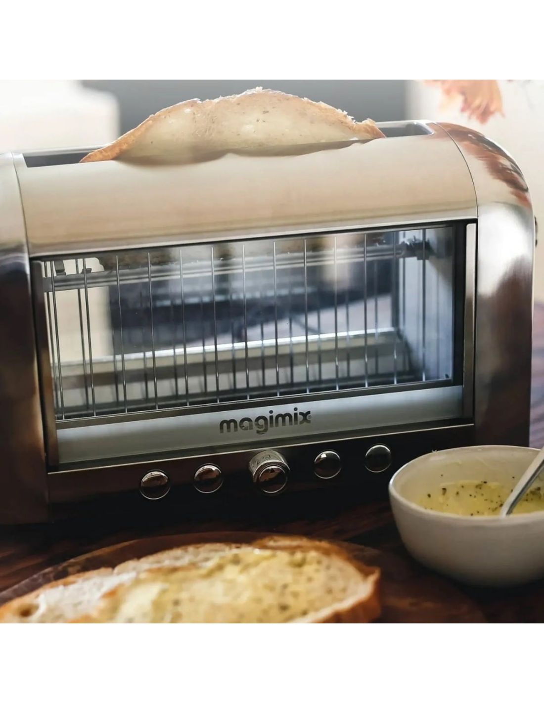 The Magimix Vision Toaster stands out for its innovative design with transparent borosilicate glass windows, allowing you to watch the bread as it toasts and achieve the desired level of browning with greater precision. With its elegant shape and robust construction, it is a practical choice for those who value control, functionality, and a distinctive touch on the kitchen countertop.