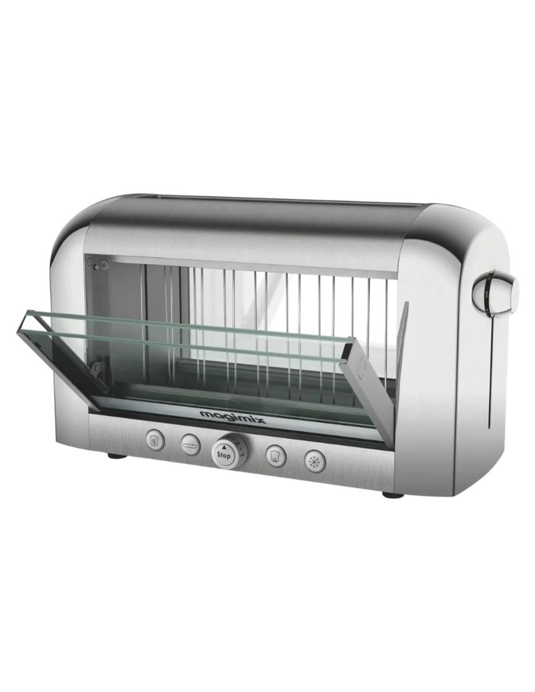 The Magimix Vision Toaster stands out for its innovative design with transparent borosilicate glass windows, allowing you to watch the bread as it toasts and achieve the desired level of browning with greater precision. With its elegant shape and robust construction, it is a practical choice for those who value control, functionality, and a distinctive touch on the kitchen countertop.