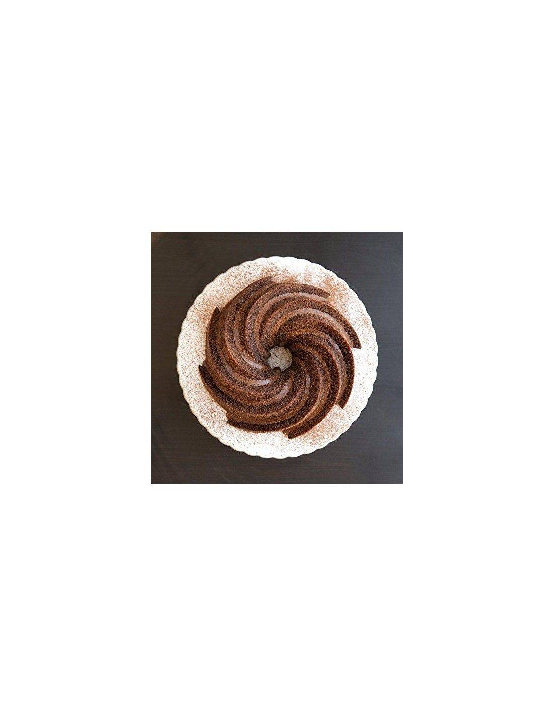 The swirling design of this Bundt pan 6 cup yields a unique cake that adds elegance to any occasion. The swirl design looks lovely with or without icing, frosting, or a touch of powdered sugar. Nordic Ware cast aluminum bake ware provides fine details and superior baking performance. Durable cast-aluminum pan distributes heat quickly and evenly to promote even rising, uniform baking and a golden crust. Center tube conducts extra heat to the middle of the cake for even baking. Nonstick interior ensures effortless release and cleanup. PFAO-free.