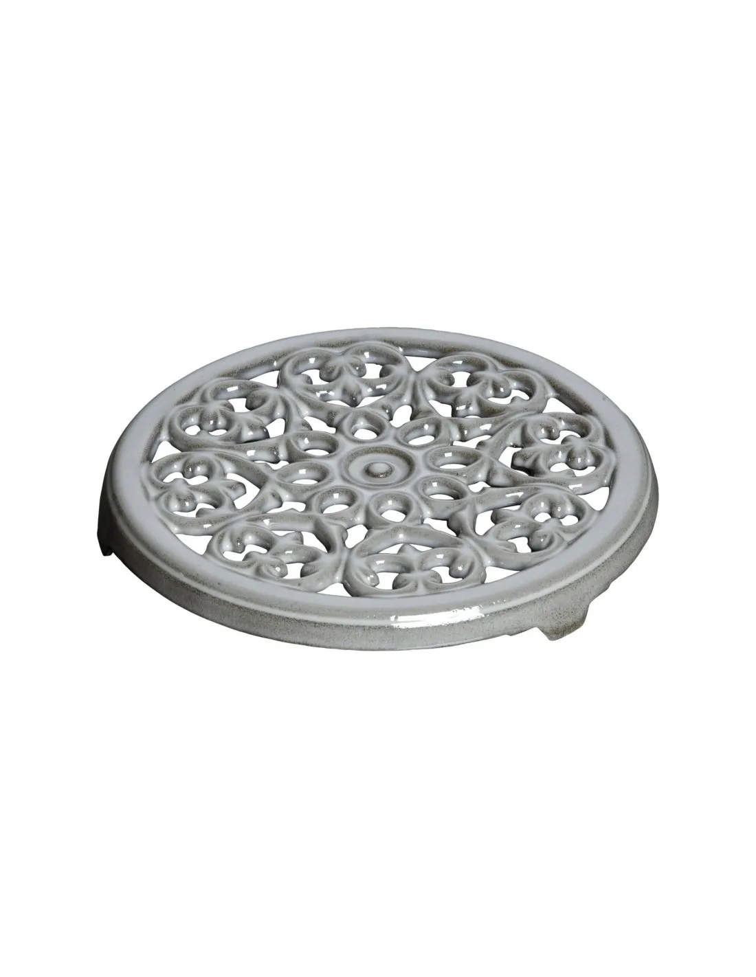 The cast iron pot stand from the Staub Accessories range provides a stable and practical means to safely set down pots, tea kettles, gratin dishes, baking tins or other hot objects. Measuring 23 cm, the round stand is also a beautiful eye-catcher thanks to its special and intricate design with the circular lily motif. This heraldic lily used to adorn the coats of arms of emperors and kings – and now it embellishes this stylish and helpful accessory for your kitchen and dining room by Staub.