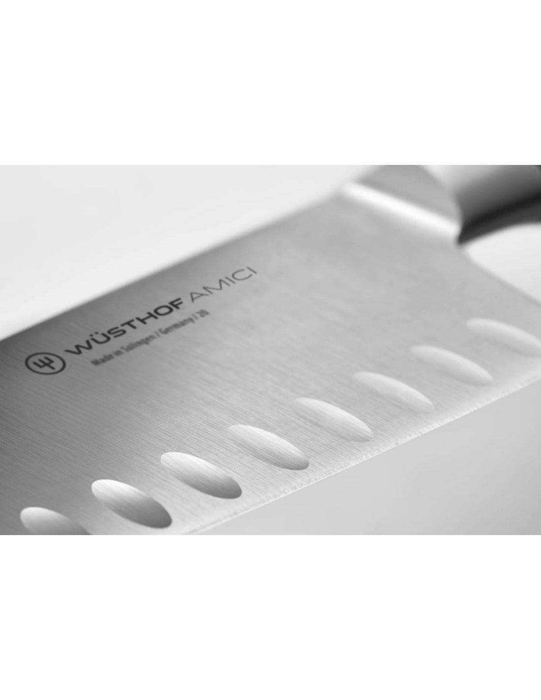 The Wüsthof Amici Hollow Edge Rotoku 17 cm is a versatile and distinctive knife inspired by Asian-style cutlery and designed to deliver precision, smooth cutting and excellent control in everyday prep work. Thanks to its shape, weight and edge, it is an excellent alternative to the classic European chef’s knife and adapts well to a wide range of cutting tasks.