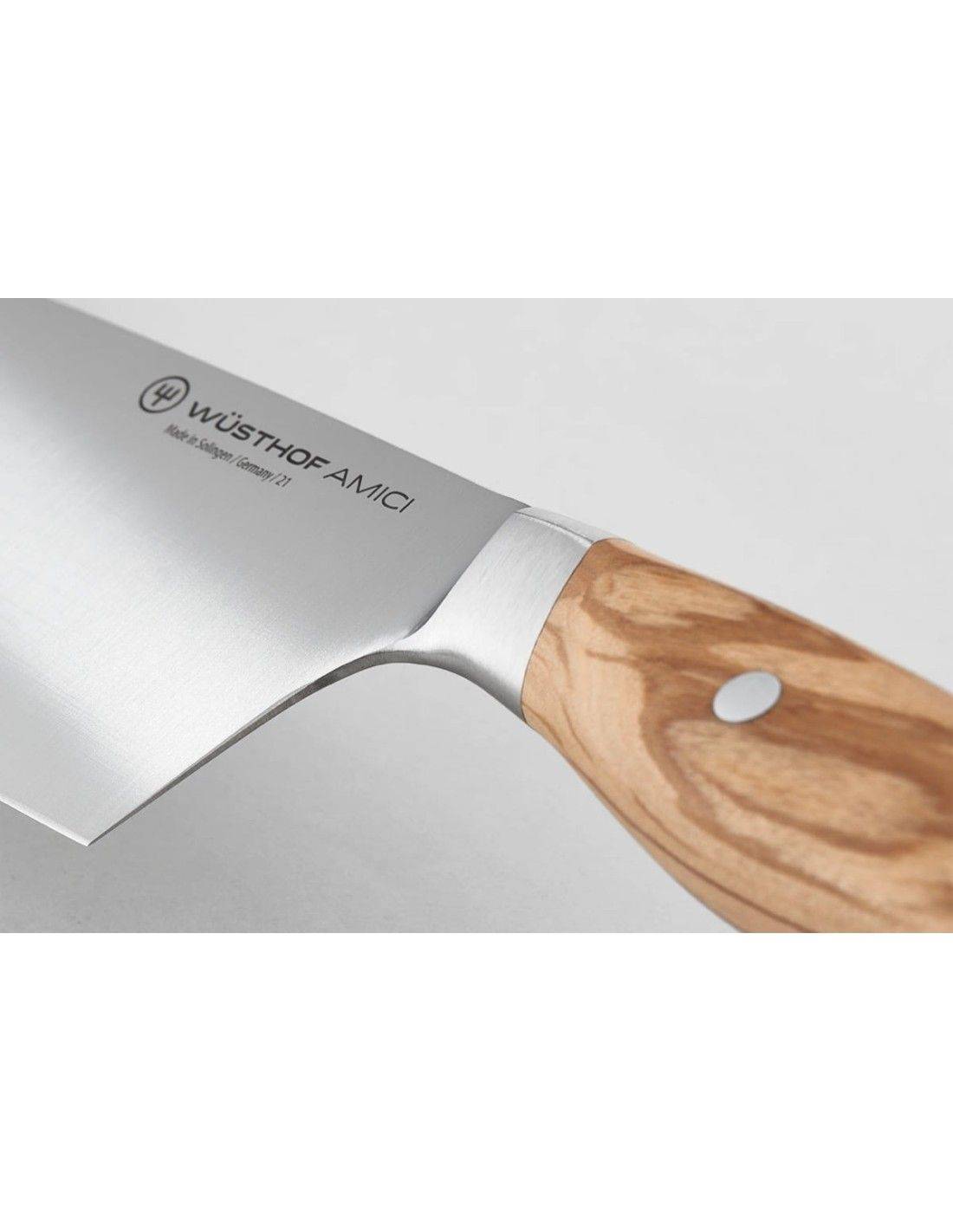 Part of the Amici range, this knife combines forged construction with a handle made from Calabrian olive wood, featuring distinctive natural grain and an organic shape that sits comfortably in the hand. It is an excellent choice for anyone looking for an elegant, precise and multi-purpose knife for frequent kitchen use.
