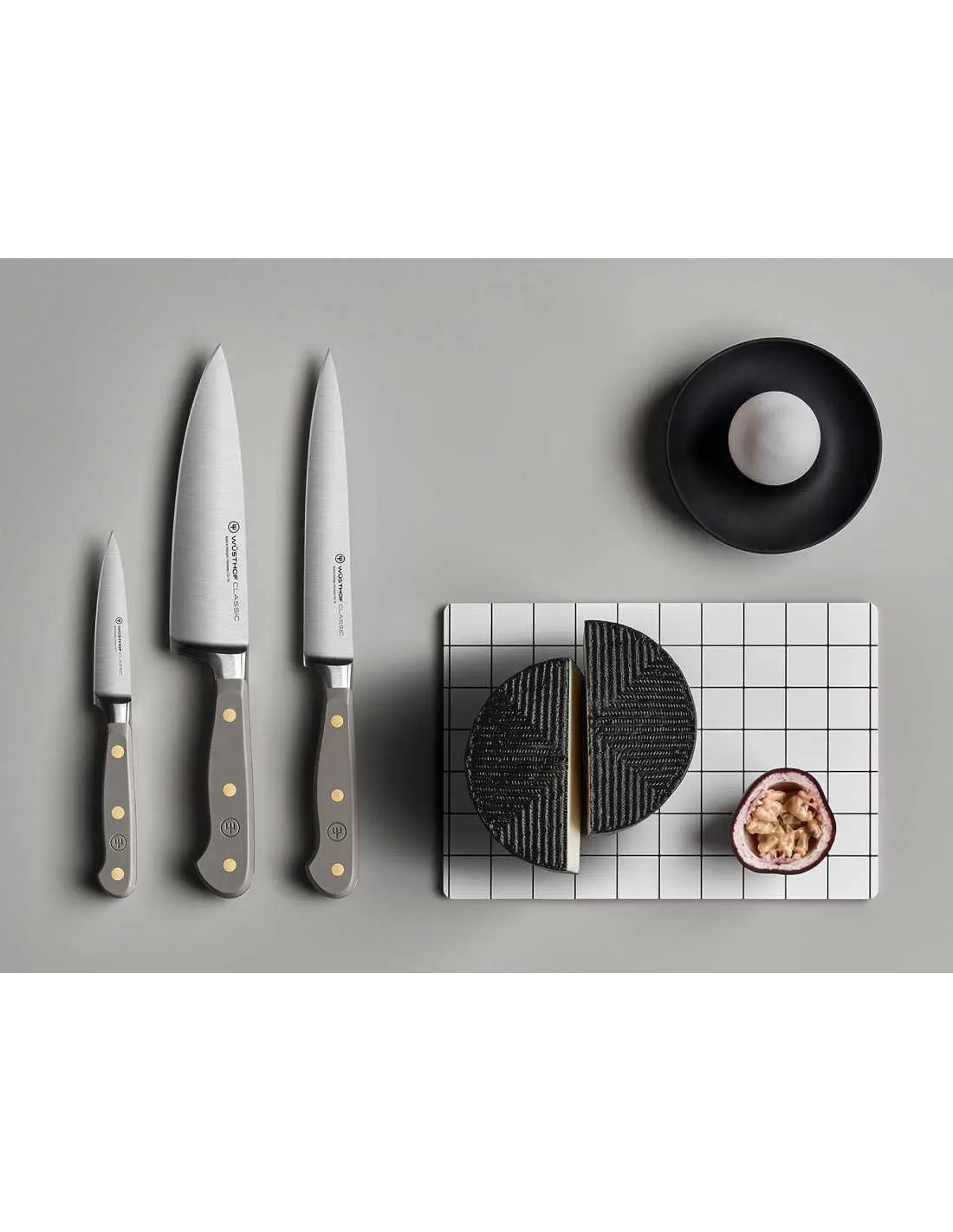 Smaller than a chef's knife and larger than a paring knife, the WÜSTHOF Classic Utility Knife is the perfect blade for a myriad of tasks. Think of this handy utility knife as a slightly longer, just-as-versatile paring knife with an aptitude for chopping shallots, onions, herbs, tender vegetables, and smaller cuts of meat.