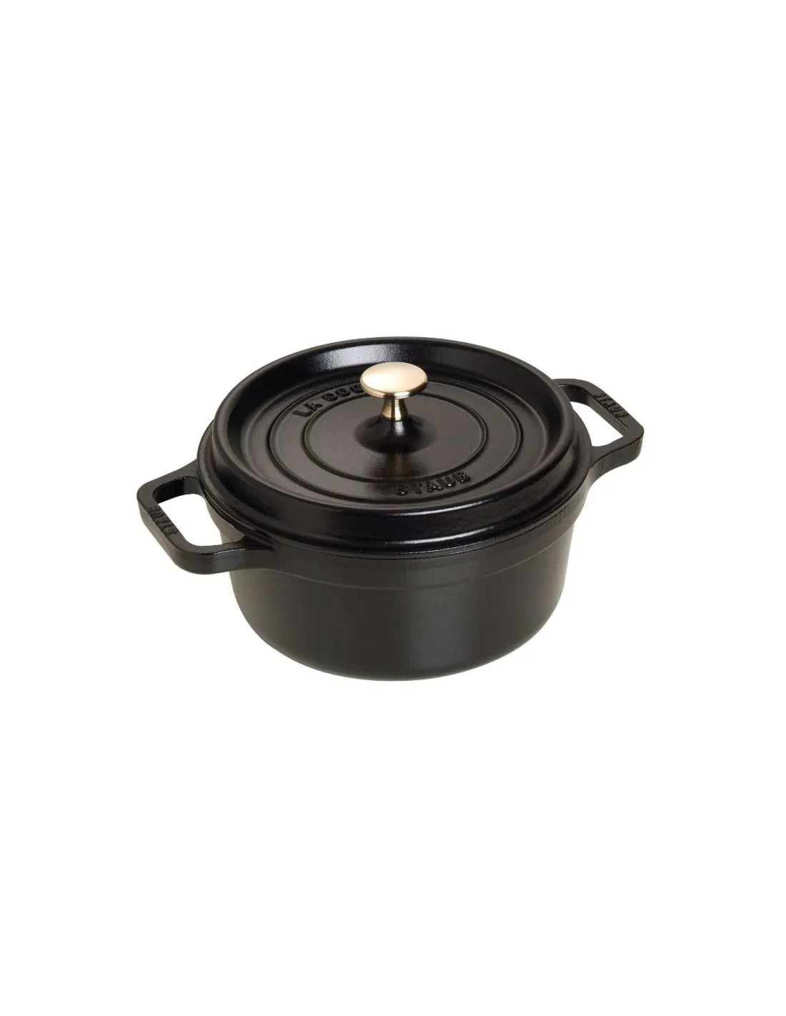 Esta Cocotte forma parte de la serie de Cocottes de Staub y es ideal para preparar guisos y estofados, ya se trate de un principiante, un cocinero aficionado o un chef galardonado. El hierro colado facilita una cocción lenta y saludable, ya que mantiene el calor absorbido y lo libera homogéneamente durante más tiempo. El recubrimiento esmaltado de color negro mate del interior de la Cocotte acentúa este efecto y potencia el sabor natural de los platos cocinados. La característica única del hierro colado esmaltado es que este efecto mejora cuanto más frecuentemente se utilice: no hay nada que iguale los intensos sabores de la comida preparada en esta Cocotte de color negro. Este recipiente tiene un diámetro de 22 cm y una capacidad de 2,6 litros y es por tanto adecuado para varias raciones si cocina para su familia o amigos. Cuando se enfría, el hierro colado tarda un tiempo en recuperar la temperatura ambiente, así los alimentos medio congelados se mantienen fríos durante más tiempo. Además, el hierro colado es fácil de limpiar y muy resistente. Es apto para todo tipo de cocinas, incluso las de inducción. Con esta Cocotte Staub elaborará deliciosos guisos y estofados en un santiamén.