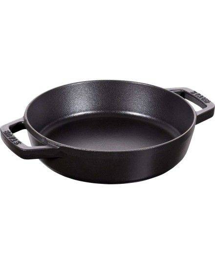 El diseño de esta sartén redonda de STAUB está inspirado en las paelleras. No obstante, este recipiente no sólo es adecuado para preparar platos de arroz, sino también para asar y cocinar carne, pescado y verduras, y para preparar deliciosas salsas. La sartén gris tiene un diámetro de 34 cm y consta de una base lisa, antiadherente y fácil de limpiar. Con esta sartén necesitará poco aceite para obtener un buen resultado. Esto hace que sea más fácil cocinar sano y bajo en grasa, sin que el paladar lo note. El hierro fundido esmaltado intensifica el sabor, motivo por el cual son tan apreciadas. La sartén tiene dos asas pequeñas en los laterales, que facilitan el transporte. Así que puede llevar cómodamente a la mesa o ponerla en el horno cuando la sartén esté llena hasta el borde. La sartén es apta para todo tipo de cocinas, incluso las de inducción.
