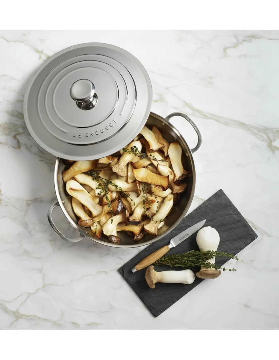 Bateriade cocina 4 piezas de acero inoxidable 3ply plus Le Creuset. La nueva gama Premium de Le Creuset inoxidable es la más espumosa del mercado, que combina perfectamente con nuestra gama de estrellas de hierro fundido esmaltado. Cada pieza estaba hecha de acero inoxidable 18/10, con tres capas (acero inoxidable, aluminio y acero inoxidable), de modo que el calor se propaga uniformemente a través de la sartén y así obtener resultados de cocción directos. Capa interior y exterior en acero inoxidable 18/10, con acabado mate en el interior, acero inoxidable 18/10, con acabado exterior brillante y aluminio entre los dos. Excelente distribución del calor durante la cocción. Refuerzo de titanio para evitar la decoloración. Compatible con todas las fuentes de calor, incluidas las placas de inducción.