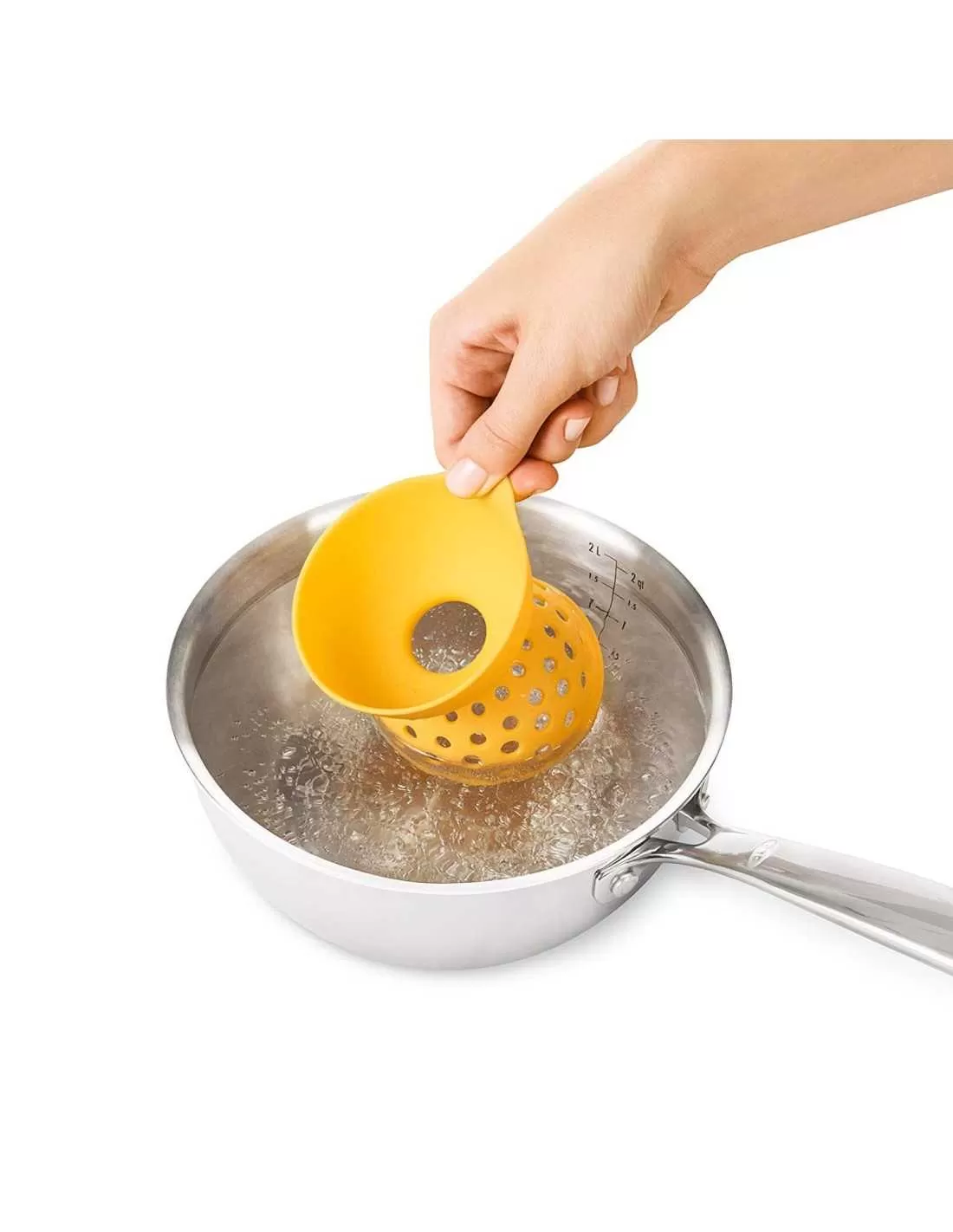 El OXO creó el accesorio de huevo escalfado para cocinar los huevos escalfados perfectos de la manera más fácil y rápida. Hecho de silicona resistente a altas temperaturas el diseño de estos accesorios envuelve alrededor de los huevos y la forma del embudo dirige los huevos al agua para evitar que la yema se propague. Un patrón de agujero cuidadosamente diseñado optimiza el flujo de agua alrededor de los huevos para cocinar uniformemente. Los accesorios tienen una línea para medir la cantidad de agua necesaria para un uso perfecto. Cuando esté listo, utilice la pestaña para retirar de forma segura el accesorio de agua. Set de 2.